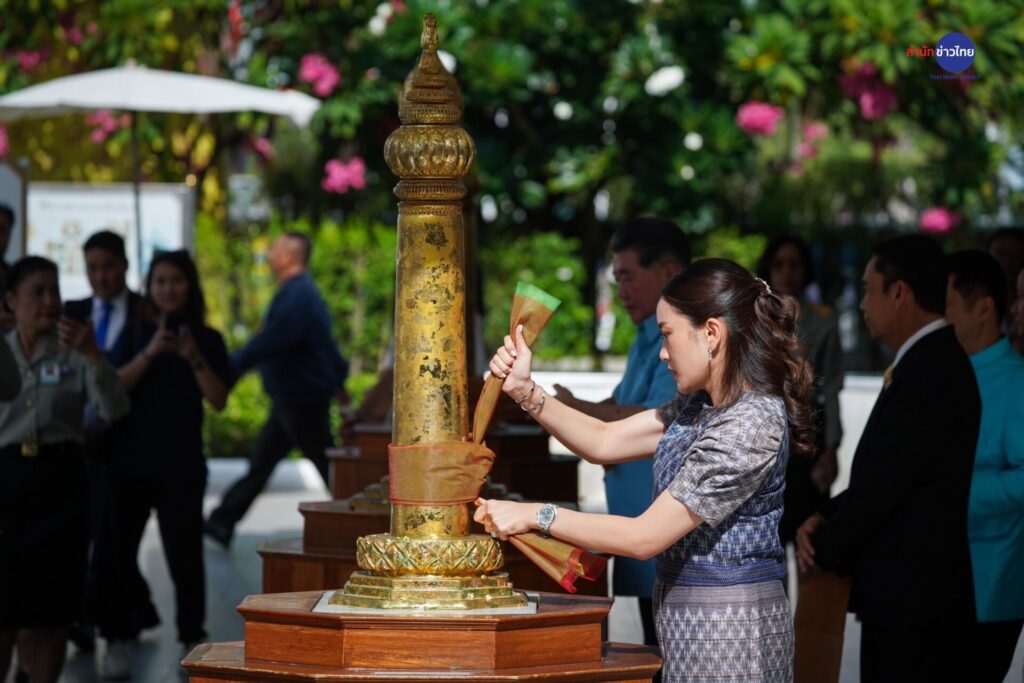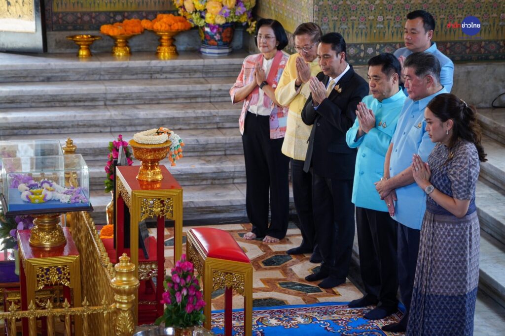 เมื่อเวลา 09.00 น. น.ส.แพทองธาร ชินวัตร นายกรัฐมนตรี เดินทางสักการะศาลหลักเมือง เพื่อเสริมสิริมงคล โดยมีนายภูมิธรรม เวชยชัย รองนายกรัฐมนตรี และรัฐมนตรีว่า ก.พาณิชย์ ในฐานะปฏิบัติหน้าที่แทนนายกรัฐมนตรี นายสุริยะ จึงรุ่งเรืองกิจ นายสุทิน คลังแสง รัฐมนตรีว่าการกระทรวงกลาโหม และนายสรวงศ์ เทียนทอง เลขาธิการพรรคเพื่อไทย ให้การต้อนรับ