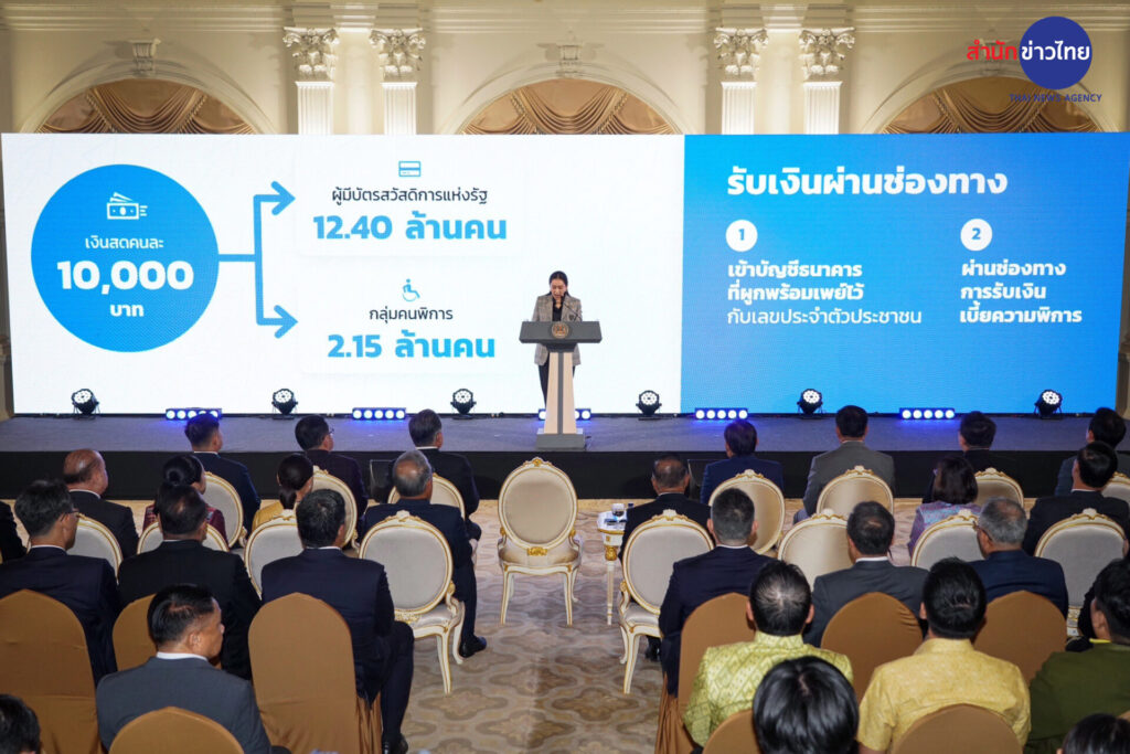 25 ก.ย.67 นางสาวแพทองธาร ชินวัตร นายกรัฐมนตรี เป็นประธานเปิดตัว (Kick Off) การโอนเงินโครงการกระตุ้นเศรษฐกิจ ปี 2567 ผ่านผู้มีบัตรสวัสดิการแห่งรัฐและคนพิการ ภายตึกสันติไมตรี (หลังใน) ทำเนียบรัฐบาล โดยมีรองนายกรัฐมนตรีและรัฐมนตรี ร่วมพิธี