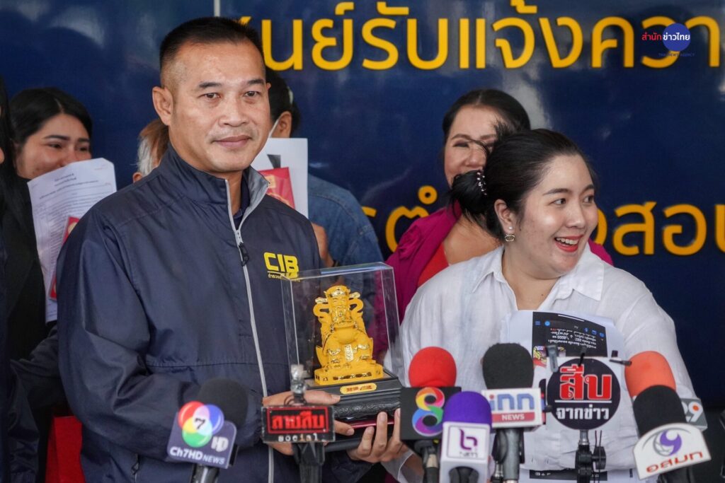 26 ก.ย.67 ตัวแทนผู้เสียหายเกือบ 20 คน ที่ซื้อทองคำออนไลน์จาก น.ส.กรกนก หรือ แม่ตั๊ก พร้อมทนายความ เข้าแจ้งความที่กองบัญชาการตำรวจสอบสวนกลาง เพื่อขอให้ดำเนินคดีกับแม่ตั๊ก และนายกานต์พล หรือ ป๋าเบียร์ ในข้อหาฉ้อโกงประชาชน