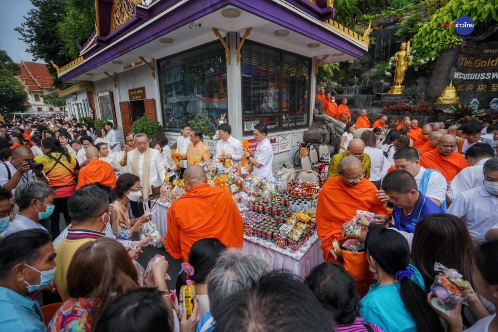 พุทธศาสนิกชน ร่วมตักบาตรเทโวโรหณะเนื่องในวันออกพรรษาที่วัดสระเกศราชวรมหาวิหาร (ภูเขาทอง) โดยมี พระเดชพระคุณพระพรหมสิทธิ เจ้าอาวาสวัดสระเกศ ราชวรมหาวิหาร เดินนำพระสงฆ์ลงมาจากบรมบรรพตภูเขาทองเพื่อรับบาตร รวม 99 รูป