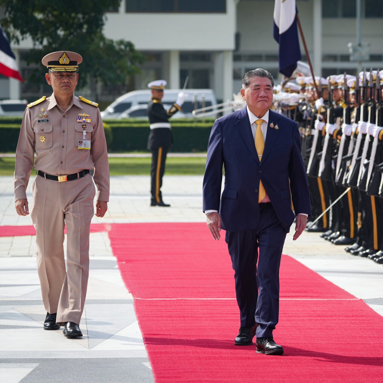 นายภูมิธรรม เวชยชัย รองนายกรัฐมนตรีและรมว.กลาโหม ตรวจเยี่ยมกองบัญชาการกองทัพเรือ อย่างเป็นทางการ เพื่อรับทราบถึงภารกิจและผลการดำเนินงานที่ผ่านมา พร้อมมอบนโยบายในการปฏิบัติงาน เพื่อเสริมสร้างขวัญกำลังใจให้แก่กำลังพลของหน่วยต่อไป โดยมี พล.ร.อ.จิรพล ว่องวิทย์ ผู้บัญชาการทหารเรือ (ผบ.ทร.) ให้การต้อนรับ