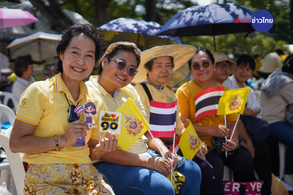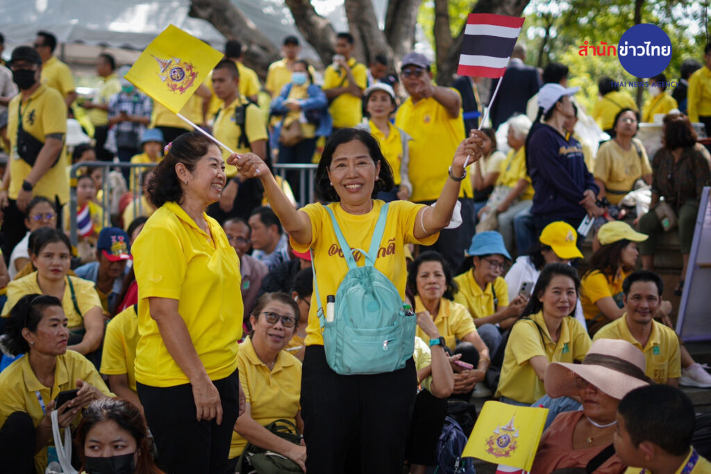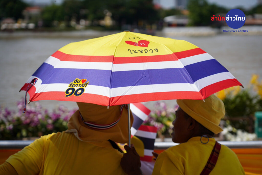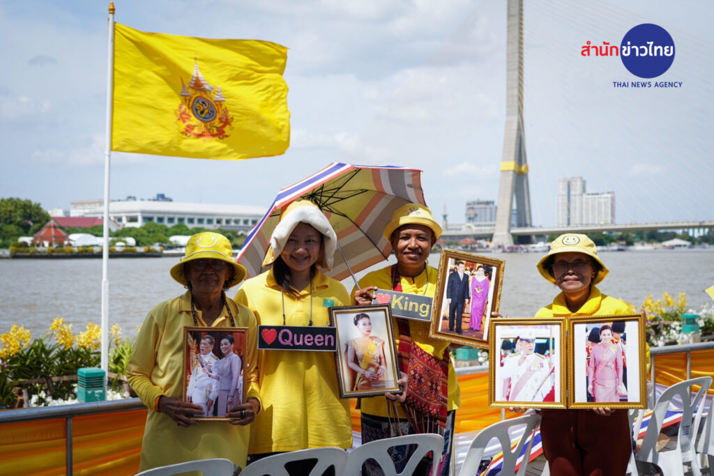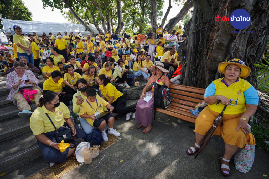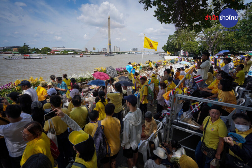 บรรยากาศที่สวนสันติชัยปราการ ถนนพระอาทิตย์ ประชาชนจำนวนมากสวมใส่เสื้อสีเหลือง เข้ามาจับจองที่นั่ง ที่ทางกรุงเทพมหานครและหน่วยงานที่เกี่ยวข้อง จัดเตรียมไว้อำนวยความสะดวกให้กับประชาชน เพื่อร่วมชมขบวนพยุหยาตราทางชลมารค จนเต็มพื้นที่