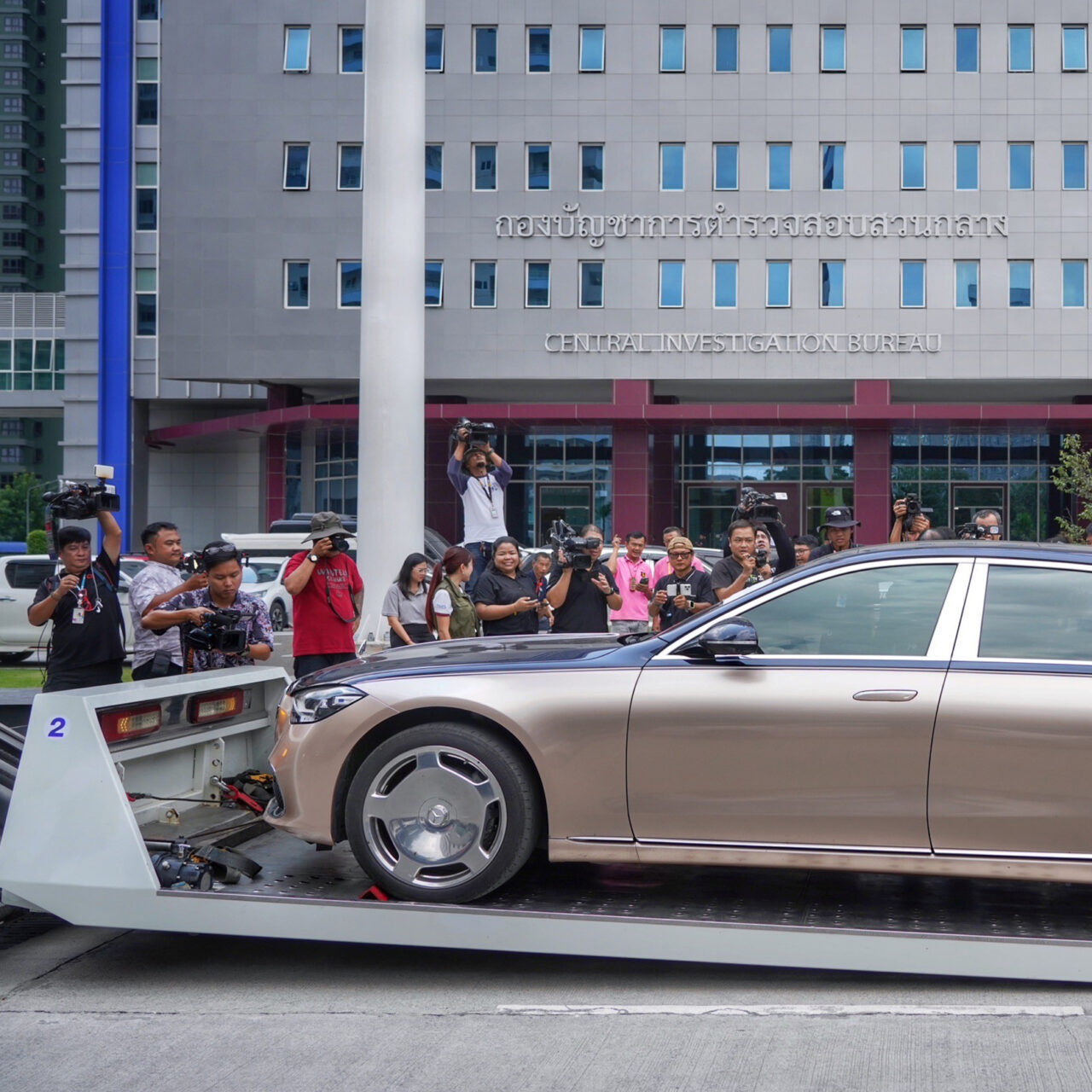 ที่กองบัญชาการตำรวจสอบสวนกลาง (บช.ก.) นายกฤษฎา อินทามระ ในฐานะที่ปรึกษากฎหมายของศูนย์ Mercedes Benz ย่านบางนา นำรถหรู Mercedes Benz รุ่น Maybach S580e ราคาประมาณ 12 ล้านบาท ที่บอสปีเตอร์ ซื้อไว้ก่อนขายต่อให้คนจีนที่อยู่ภูเก็ต มามอบให้กับเจ้าหน้าที่ตำรวจ บก.ปคบ. ตรวจสอบ
