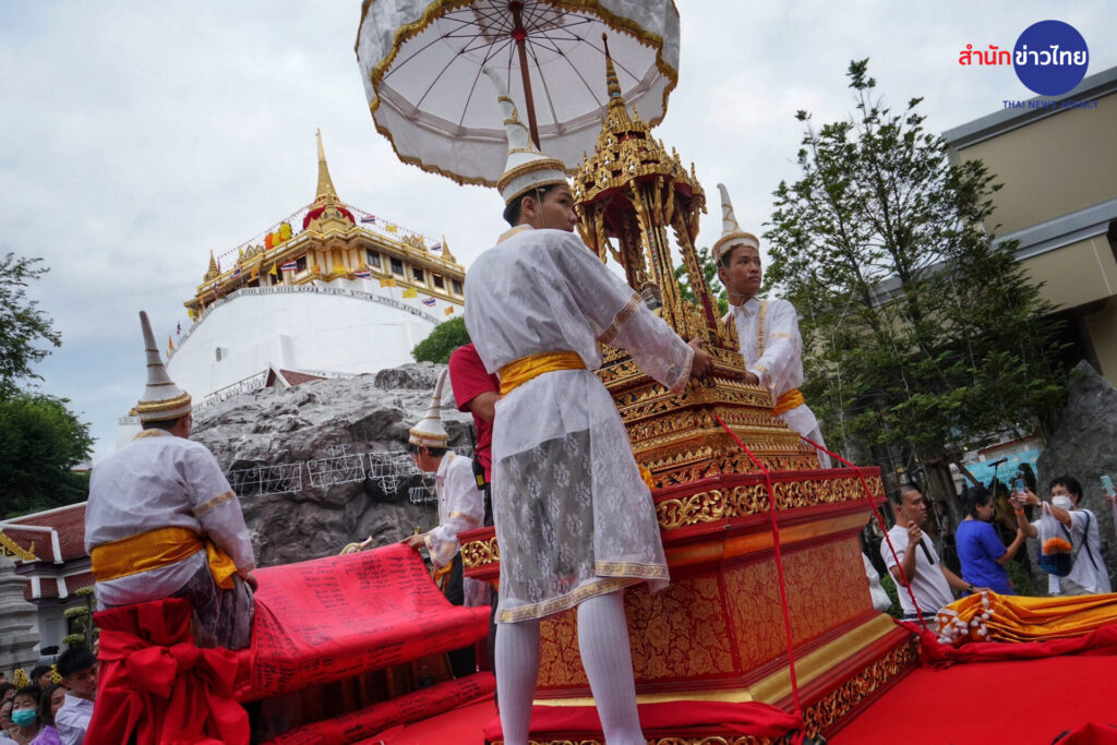 ประเพณีห่มผ้าแดง “งานภูเขาทอง (วัดสระเกศ)” เป็นพิธีที่ปฏิบัติสืบทอดต่อกันมายาวนานตั้งแต่สมัยรัชกาลที่ 5 มีความเชื่อว่า การได้ห่มผ้าแดงองค์พระเจดีย์บรมบรรพต จะสร้างอานุภาพแห่งการบูชาพระบรมสารีริกธาตุ และทำให้เกิดความร่มเย็นเป็นสุข มีความเจริญก้าวหน้าในชีวิต แคล้วคลาดปลอดภัยจากอันตรายนานาประการ โดยในปีนี้ งานภูเขาทอง (วันสระเกศ) จะเริ่มขึ้นในวันศุกร์ที่ 8 พฤศจิกายน จะสิ้นสุดวันอาทิตย์ที่ 17 พฤศจิกายน 2567