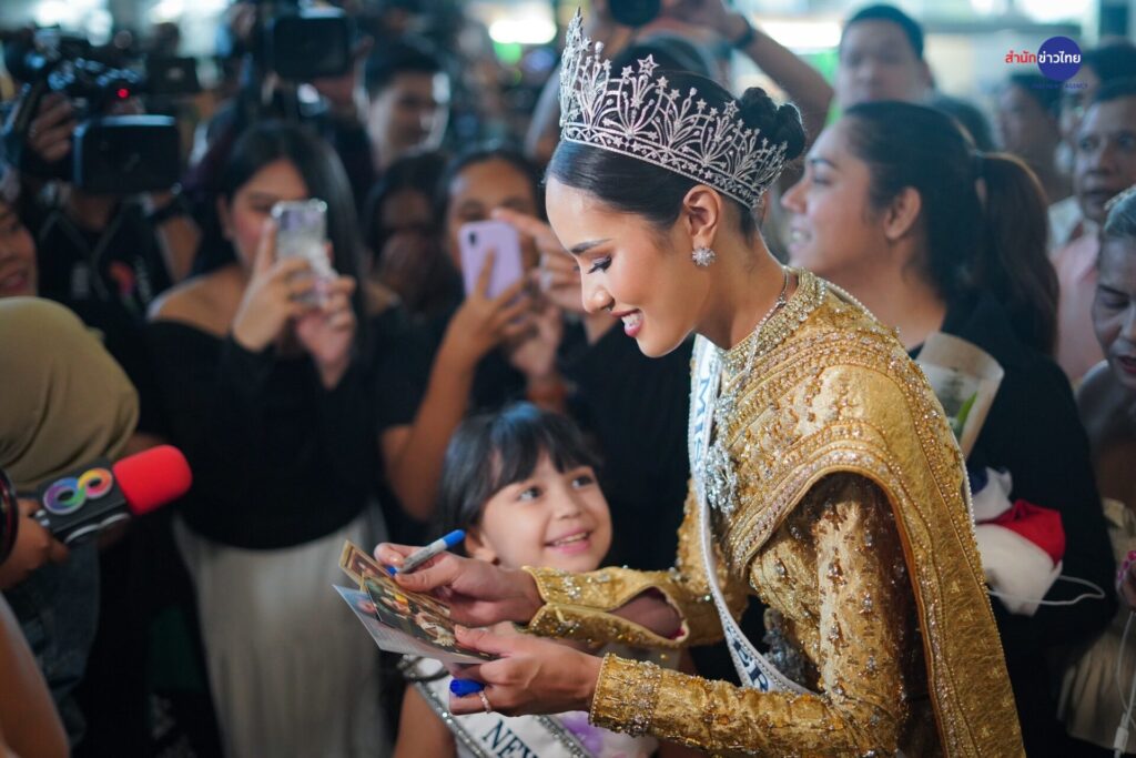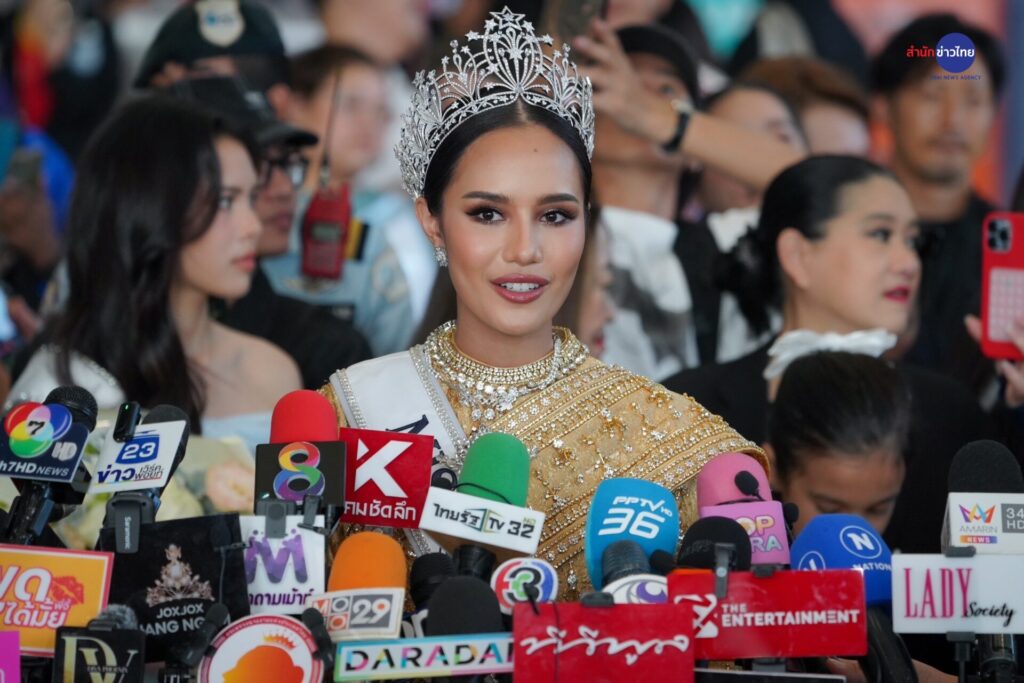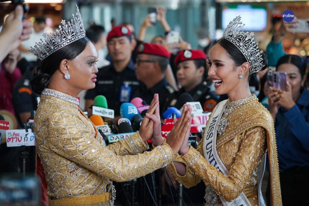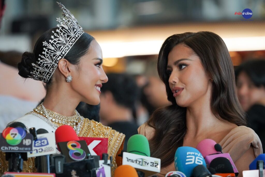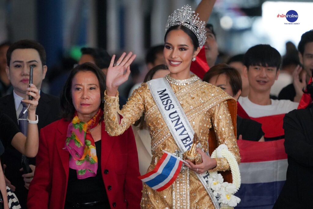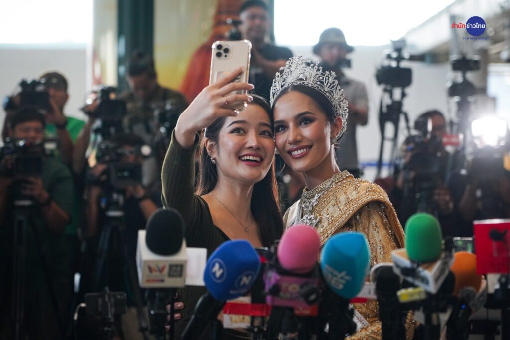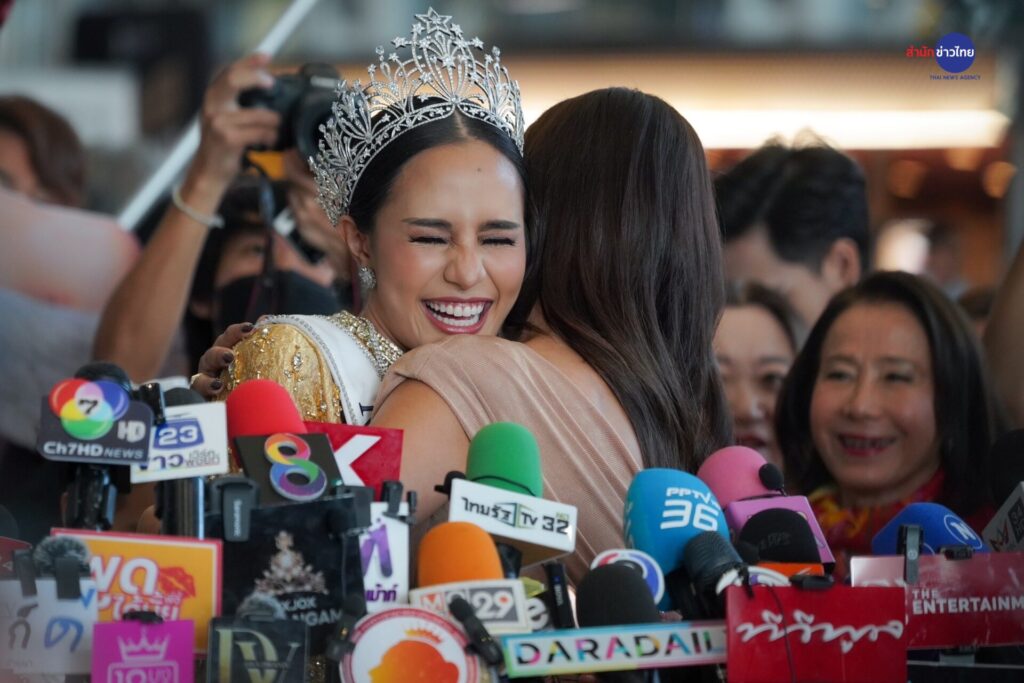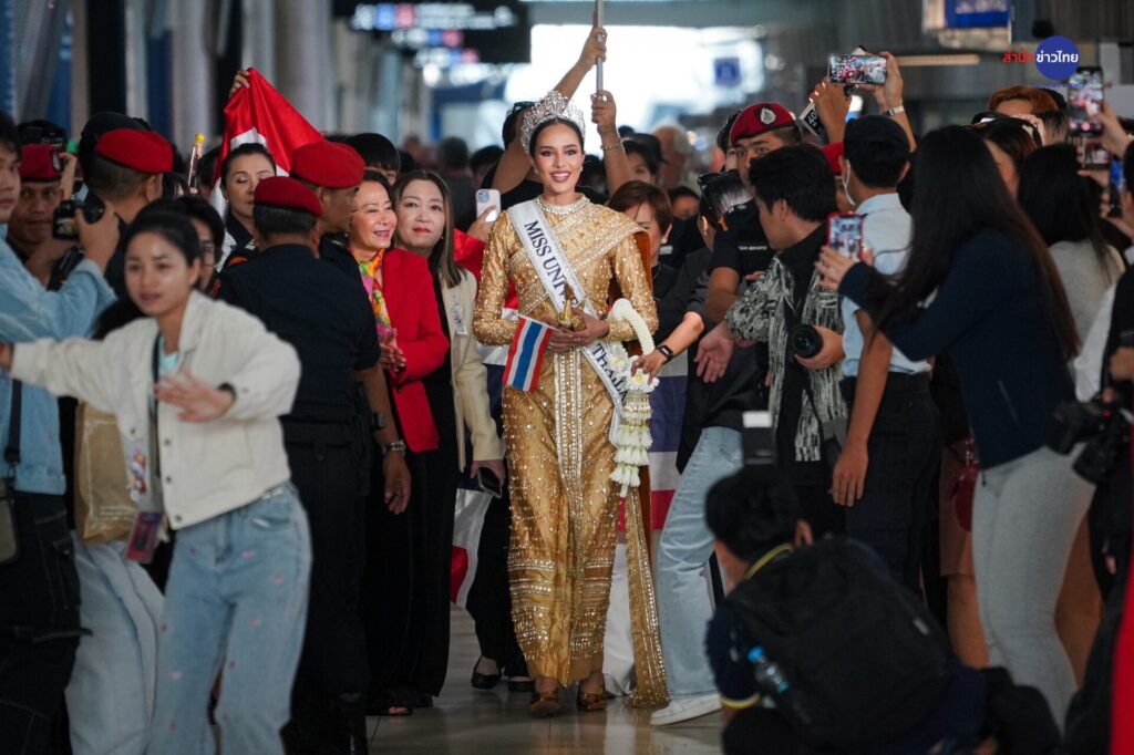 “โอปอล” สุชาตา ช่วงศรี รองอันดับ 3 Miss Universe 2024 ถึงประเทศไทยแล้ว หลังจากเสร็จสิ้นภารกิจการประกวด Miss Universe ครั้งที่ 73 ที่ประเทศเม็กซิโก พร้อมปรากฏตัวด้วยชุดไทยสวยสง่างาม ท่ามกลางแฟนนางงามที่มาต้อนรับกันอย่างอบอุ่น ที่ สนามบินสุวรรณภูมิ โดยทันทีที่เธอออกมาพบปะสื่อมวลชนเธอได้ตะโกนเสียงว่า “ไทยแลนด์” โดยมีนางงามรุ่นพี่อย่าง “แอนโทเนีย โพซิ้ว” รองอันดับ 1 Miss Universe 2023 มาคอยต้อนรับด้วย
