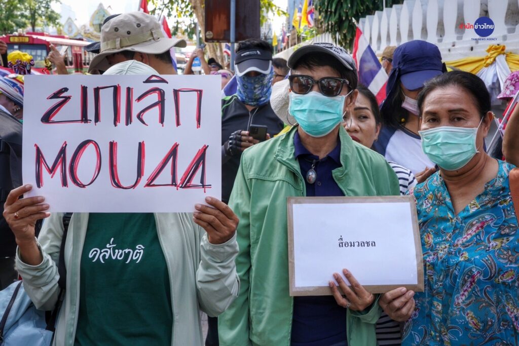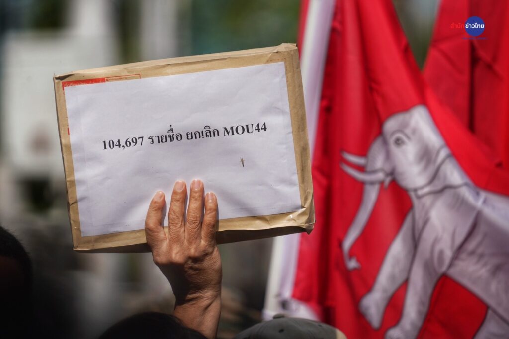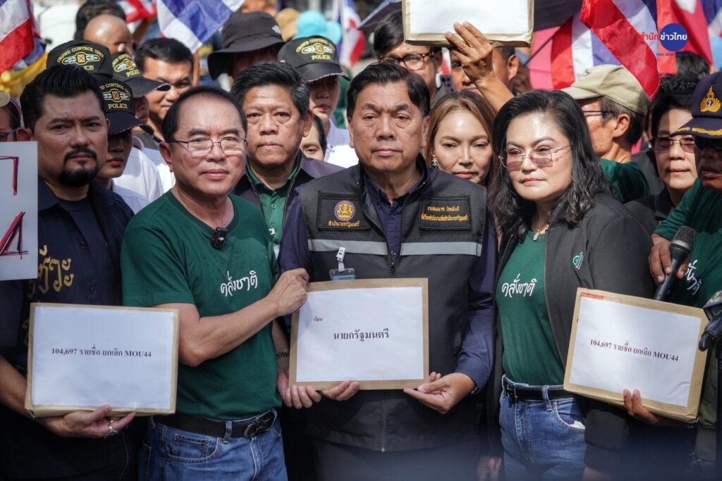 22 พ.ย.2567 นพ.วรงค์ เดชกิจวิกรม ประธานพรรคไทยภักดี พร้อมแนวร่วมกลุ่มคนคลั่งชาติ นำรายชื่อประชาชน 104,697 รายชื่อ ยื่นถึงนายกรัฐมนตรี โดยมี นายสมพาศ นิลพันธ์ ที่ปรึกษาด้านการบริหารจัดการเรื่องร้องทุกข์ สำนักงานปลัดสำนักนายกรัฐมนตรี เป็นผู้รับเรื่องให้ยกเลิก MOU 44 โดยมีข้อเรียกร้อง 3 ข้อ