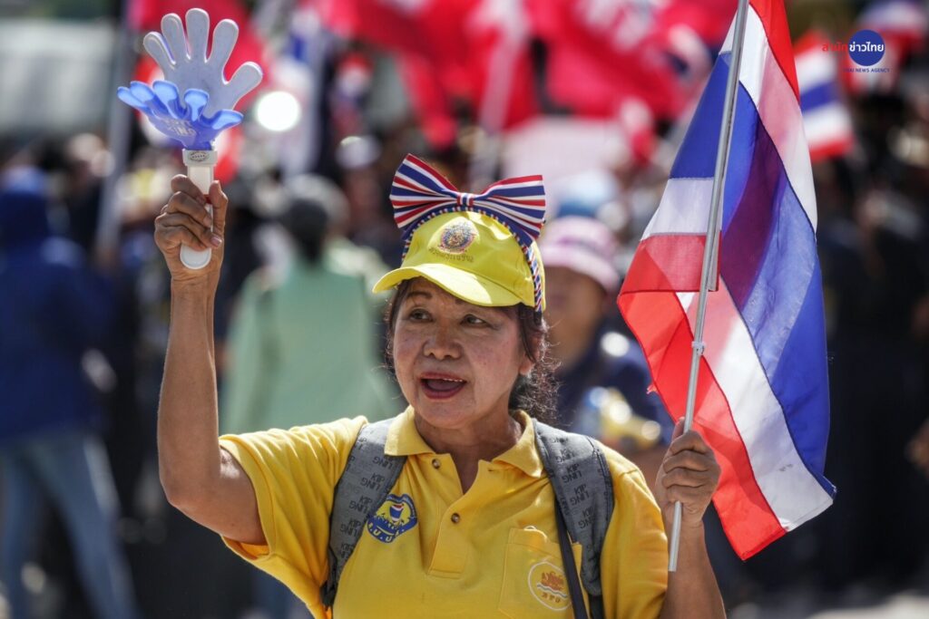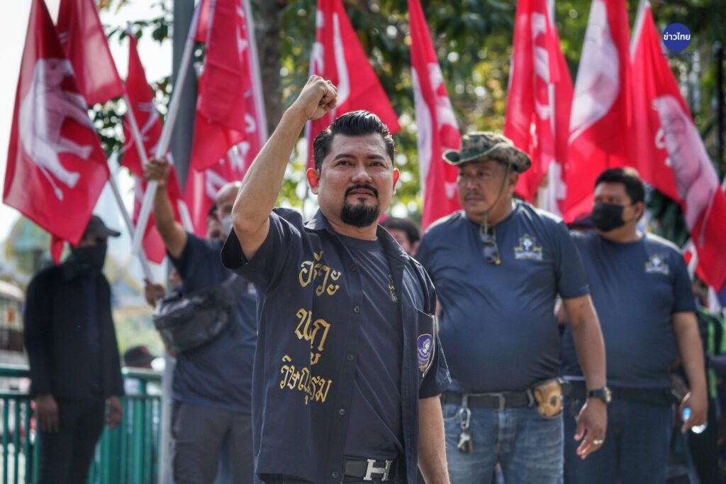 โดยมีกลุ่มอาชีวะนำธงสยามประเทศ หรือ ธงช้างเผือก มาพร้อมมวลชน “คนคลั่งชาติ” เดินเป่านกหวีดส่งเสียงเชียร์ แสดงจุดยืน ร่วมกับกิจกรรมของ นพ.วรงค์