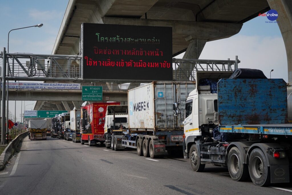 พันตำรวจตรีกล้า สมบัติพิบูลย์ สารวัตรตำรวจทางหลวง 1 กองกำกับการ 2 เปิดเผยว่า การจราจรบนถนนพระราม 2 ทั้งขาเข้าและขาออก ขณะนี้อยู่ในขั้นวิกฤต โดยเฉพาะ ขาออกจากกรุงเทพมหานคร มุ่งหน้ามาในพื้นที่เกิดเหตุ บริเวณด้านหน้าตลาดมหาชัยเมืองใหม่ จังหวัดสมุทรสาคร พบท้ายแถว ยาว 15 กิโลเมตรอยู่หน้าห้างสรรพสินค้าโลตัส พระราม 2 จึงขอให้ผู้ที่ใช้รถใช้ถนน หลีกเลี่ยงเส้นทาง หากต้องการเดินทางไปในพื้นที่ภาคใต้ ให้ใช้ถนนบางขุนเทียนสมุทรสาคร ผ่านแม่น้ำท่าจีน ตัดเข้าช่วงจังหวัดสมุทรสงคราม หรือใช้ เส้นทางถนนกาญจนาภิเษก มุ่งหน้าจังหวัดนครปฐม ผ่านจังหวัดราชบุรี ก่อนตัดออกที่จังหวัดเพชรบุรี ส่วนขาเข้า ขณะนี้พบรถติดเช่นกัน มีท้ายแถวสะสมประมาณ 3 กิโลเมตร ผู้ที่ต้องการจะเดินทางเข้ากรุงเทพฯ ขอให้เปลี่ยนไปใช้เส้นทางถนนเศรษฐกิจ แล้วตัดเข้าที่ถนนเพชรเกษมแทน
