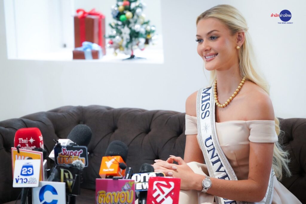 “หลังจากได้รับตำแหน่ง ชีวิตเปลี่ยนไปเยอะมาก แต่ว่าตัวตนของตัวเองยังเหมือนเดิม ความตั้งใจในภารกิจต่างๆ ที่เคยตั้งใจไว้ ก็ยังเหมือนเดิม และในฐานะมิสยูนิเวิร์ส มีความมุ่งมั่นอยากเป็นกระบอกเสียงในการปกป้องสัตว์ การรับรู้สิทธิของสัตว์ เพราะตั้งแต่เด็ก ตนทำงานเกี่ยวกับการปกป้องดูแลสัตว์ พยายามให้คนตระหนักรู้เกี่ยวกับสัตว์ อยากเป็นเสียงของคนที่ไม่มีเสียง”