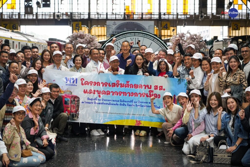 บรรยากาศการเดินทางไปสัมมนาโครงการเสริมศักยภาพ สส. และบุคลากรทางการเมืองของพรรคเพื่อไทย ที่อำเภอหัวหิน จังหวัดประจวบคีรีขันธ์ นำโดยนางสาวแพทองธาร ชินวัตร นายกรัฐมนตรี ในฐานะหัวหน้าพรรคเพื่อไทย พร้อมด้วยนายเศรษฐา ทวีสิน อดีตนายกรัฐมนตรี โดยมีรัฐมนตรี พร้อมด้วย สส.พรรคเพื่อไทย ซึ่งรวมตัวกันที่สถานีรถไฟกรุงเทพ หรือ สถานีหัวลำโพง เพื่อไปยังสถานีรถไฟหนองแก โดยการเดินทางครั้งนี้ใช้ขบวนรถพิเศษ 913 Royal Blossom