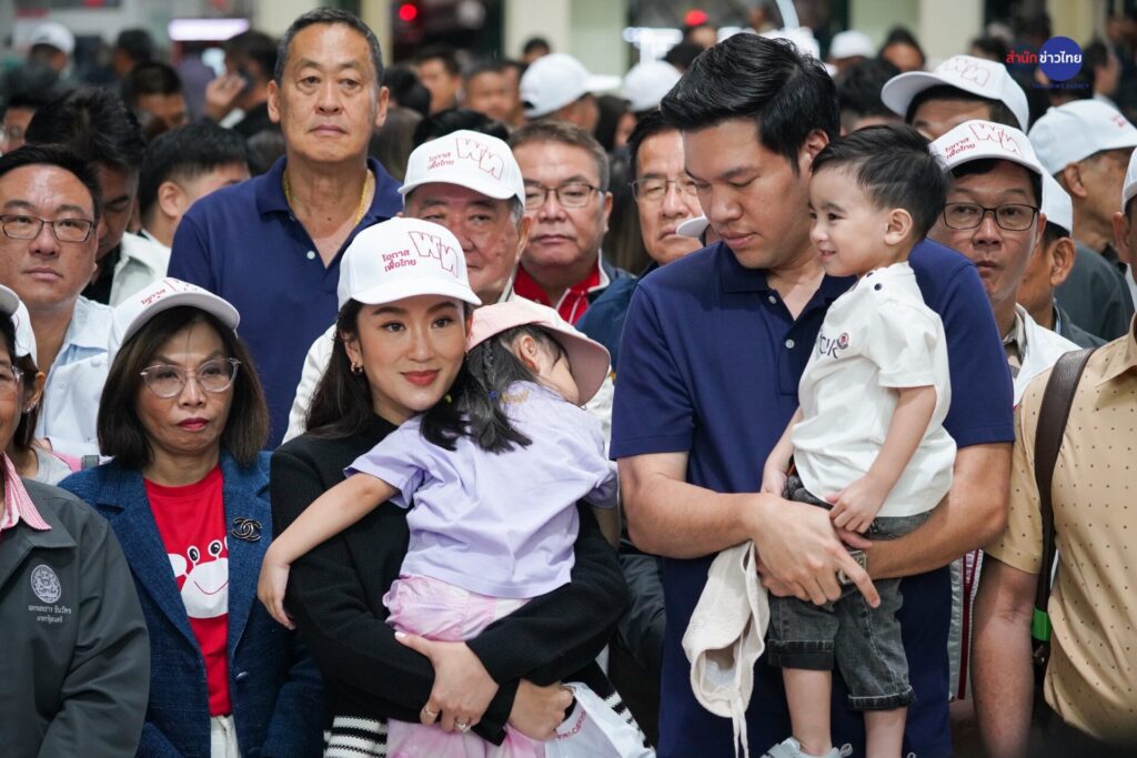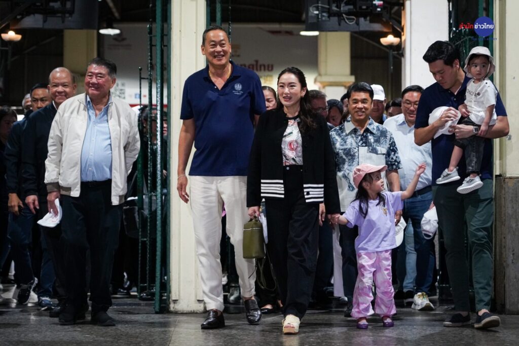 ต่อมาในเวลา 08.00 น. นายกรัฐมนตรี เดินทางถึงสถานีรถไฟหัวลำโพง ซึ่งมาพร้อมด้วยนายปิฎก สุขสวัสดิ์ สามี, น้องธิธาร สุขสวัสดิ์ ลูกสาว และน้องธาษิณ พฤจ์ธาษิณ สุขสวัสดิ์ ลูกชาย รวมถึงครอบครัว “ชินวัตร” อาทิ นายพานทองแท้ ชินวัตร และหลาน ๆ รวม 7 คน ร่วมขบวนด้วย