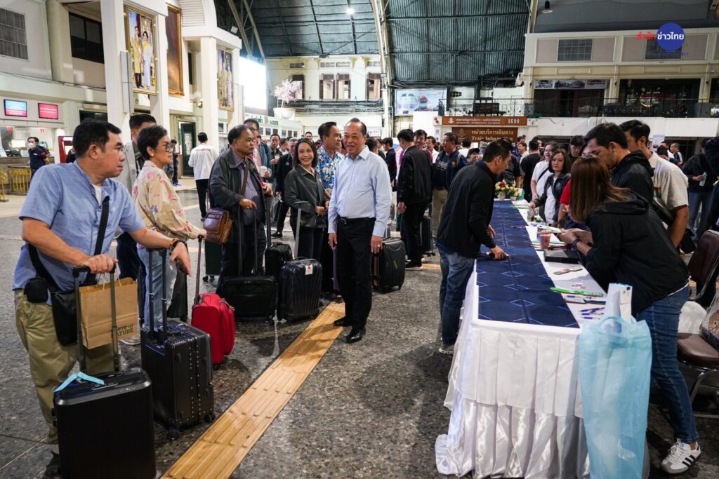 ในเวลา 07.15 น. นายเศรษฐา เดินทางถึงสถานีรถไฟหัวลำโพง และได้เดินเข้าไปพูดคุยกับอดีตคนร่วมงานในสมัยที่เป็นนายกฯ อาทิ อดีตรัฐมนตรี, เลขาธิการนายกรัฐมนตรี, อดีตโฆษกรัฐบาล และทีมงาน โดยนายเศรษฐา ทักทายทุกคนว่า “เป็นอย่างไรบ้าง” ซึ่งบรรยากาศเป็นไปอย่างชื่นมื่น และเต็มเปี่ยมด้วยความคิดถึง