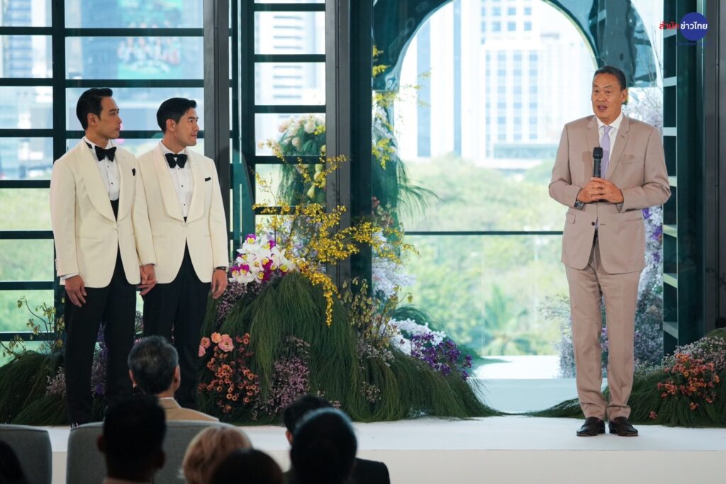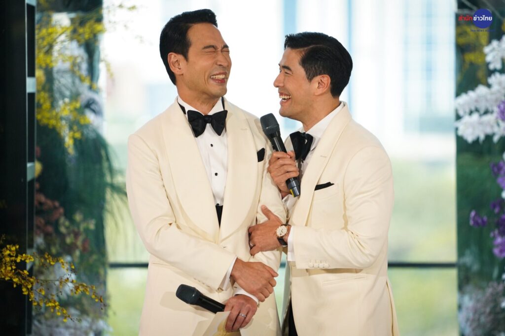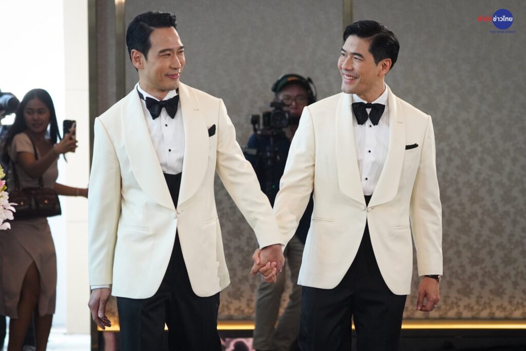 โดยมีนายเศรษฐา ทวีสิน อดีตนายกรัฐมนตรี ให้เกียรติเป็นประธานในงาน พร้อมด้วยคณะทำงานจากหลายภาคส่วนที่ช่วยผลักดันกฎหมายสมรสเท่าเทียม อาทิ นายชัชชาติ สิทธิพันธุ์ ผู้ว่าราชการกรุงเทพมหานคร, นายดนุพร ปุณณกันต์ ประธานคณะกรรมาธิการ (กมธ.) สมรสเท่าเทียม, นายเกิดโชค เกษมวงศ์จิตร รองอธิบดีกรมคุ้มครองสิทธิและเสรีภาพ กระทรวงยุติธรรม และ อรรณว์ ชุมาพร (วาดดาว) ประธานและผู้ก่อตั้งบริษัท นฤมิตไพรด์ จำกัด เดินทางมาร่วมงาน ท่ามกลางความยินดีของครอบครัว เพื่อนๆ และคนสนิท