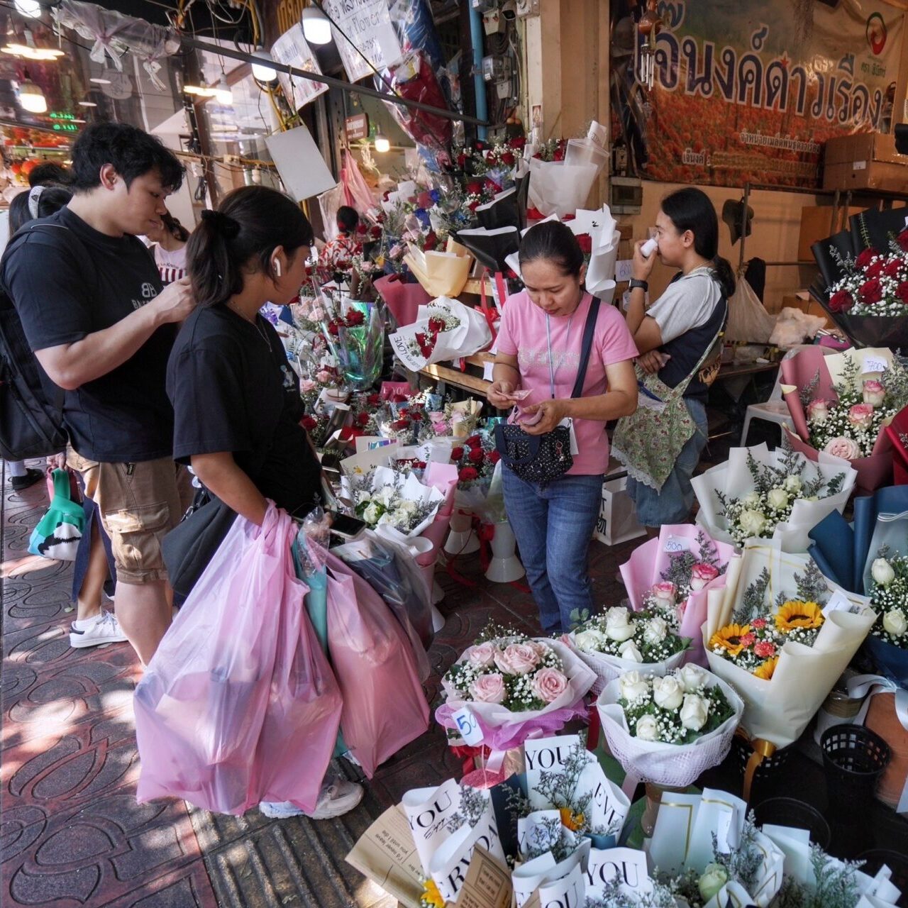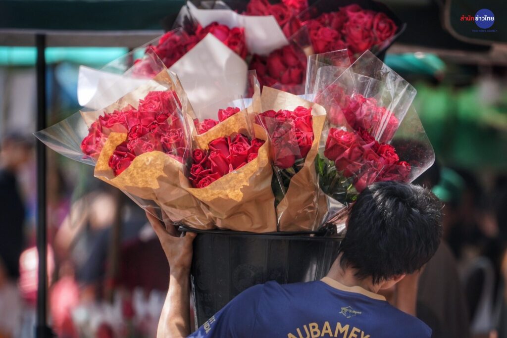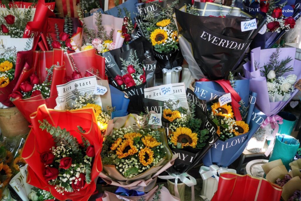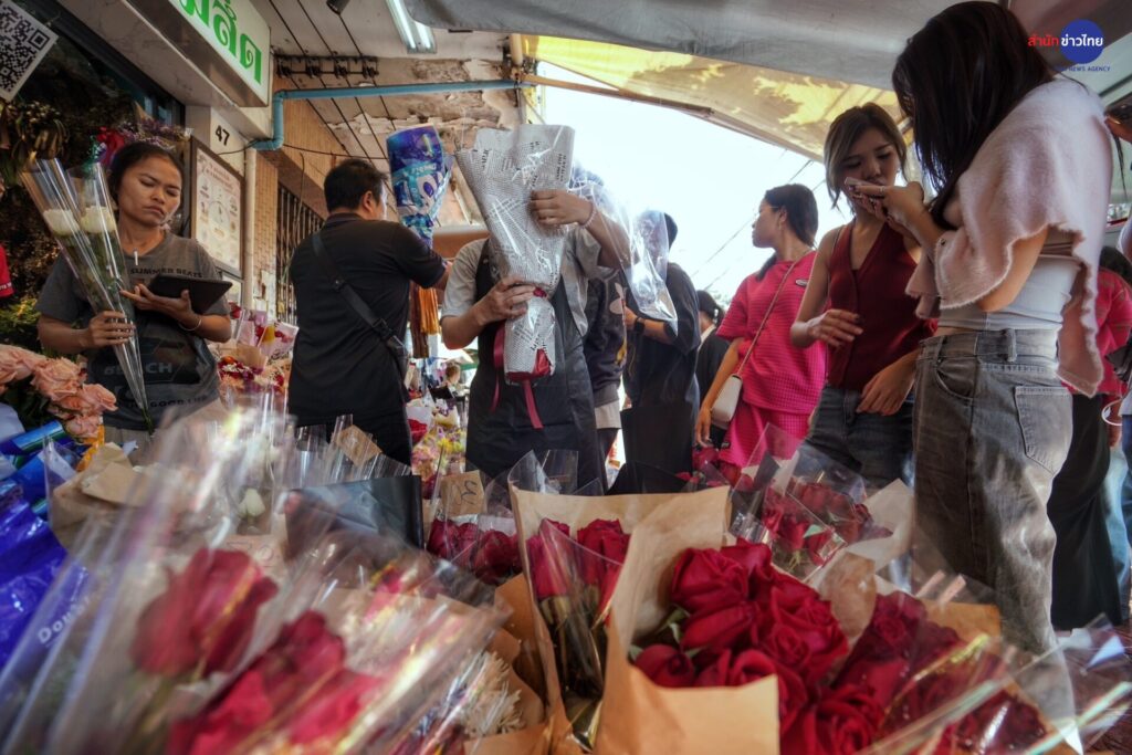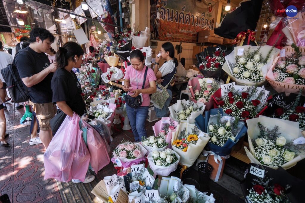 13 ก.พ. 68 บรรยากาศที่ปากคลองตลาด ช่วงก่อนวันวาเลนไทน์ การซื้อขายเริ่มคึกคัก มีประชาชนมาเลือกซื้อดอกไม้ โดยเฉพาะดอกกุหลาบ ซึ่งร้านค้าหลายร้านได้นำดอกกุหลาบหลากสีสัน ทั้งสีขาว สีเหลือง สีชมพู และสีแดง มาวางขายให้ลูกค้าได้เลือกซื้อ จากการสำรวจราคา ดอกกุหลาบเริ่มต้นที่ 40 บาท ไปจนถึง 500 บาท แล้วแต่ขนาดของดอกและสายพันธุ์ ส่วนดอกไม้แบบจัดช่อ ราคาตั้งแต่ 150-2,000 บาท แล้วแต่แบบและจำนวนของดอกไม้