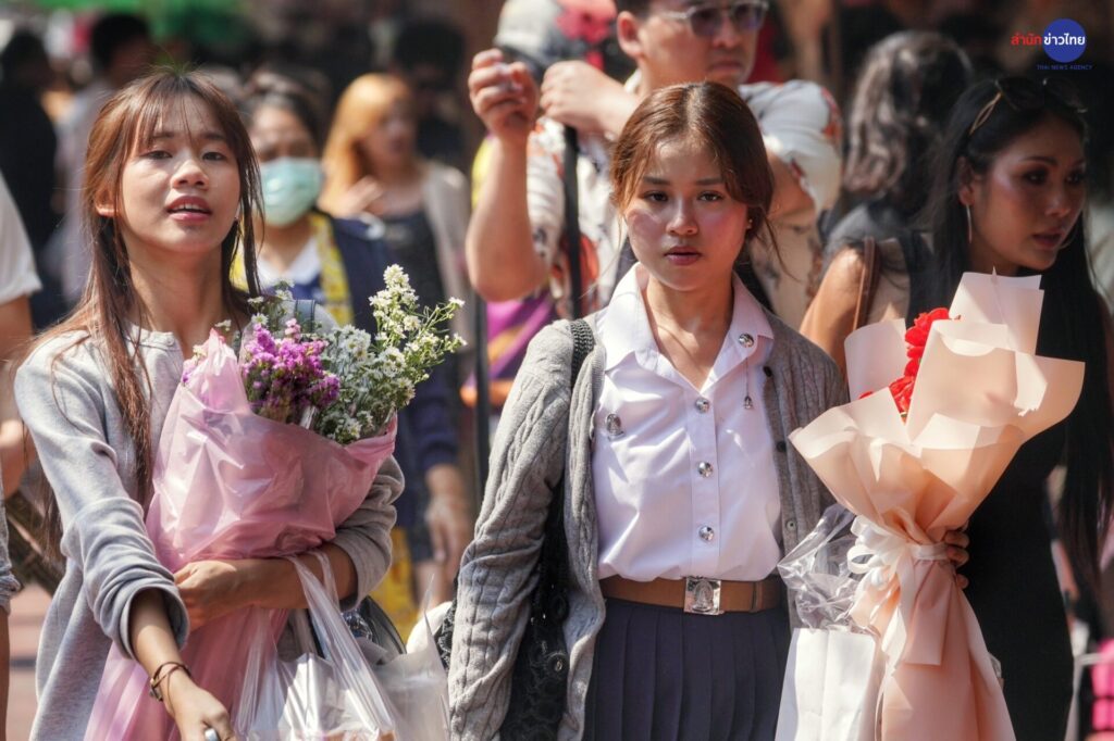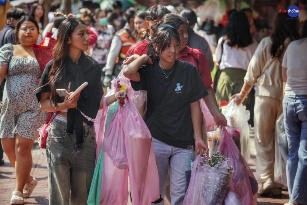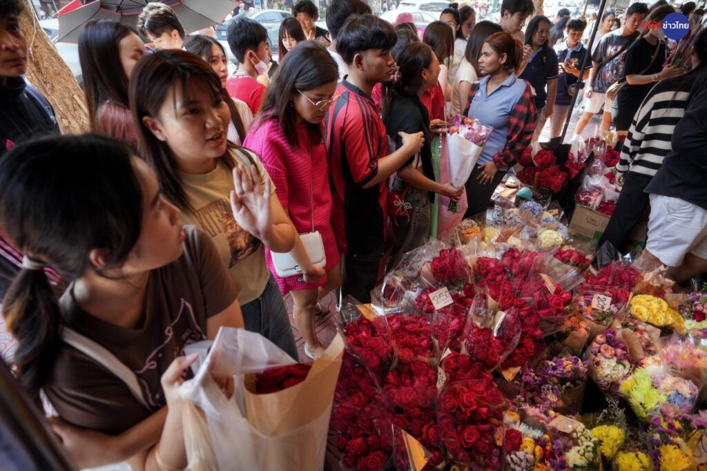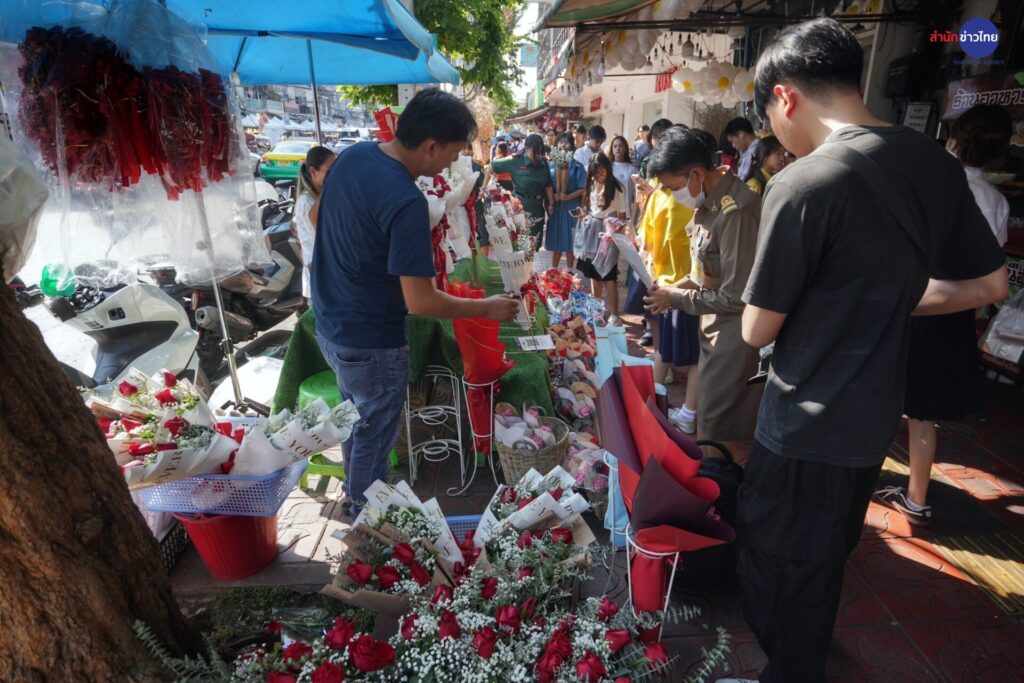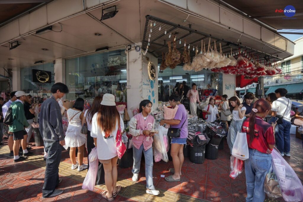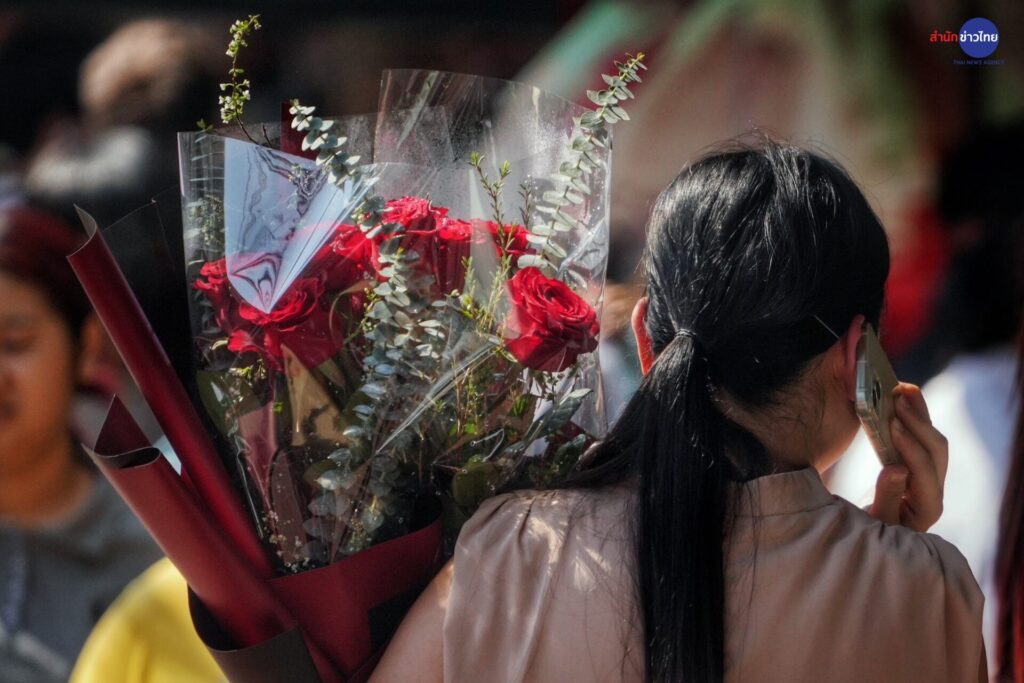 13 ก.พ. 68 บรรยากาศที่ปากคลองตลาด ช่วงก่อนวันวาเลนไทน์ การซื้อขายเริ่มคึกคัก มีประชาชนมาเลือกซื้อดอกไม้ โดยเฉพาะดอกกุหลาบ ซึ่งร้านค้าหลายร้านได้นำดอกกุหลาบหลากสีสัน ทั้งสีขาว สีเหลือง สีชมพู และสีแดง มาวางขายให้ลูกค้าได้เลือกซื้อ จากการสำรวจราคา ดอกกุหลาบเริ่มต้นที่ 40 บาท ไปจนถึง 500 บาท แล้วแต่ขนาดของดอกและสายพันธุ์ ส่วนดอกไม้แบบจัดช่อ ราคาตั้งแต่ 150-2,000 บาท แล้วแต่แบบและจำนวนของดอกไม้