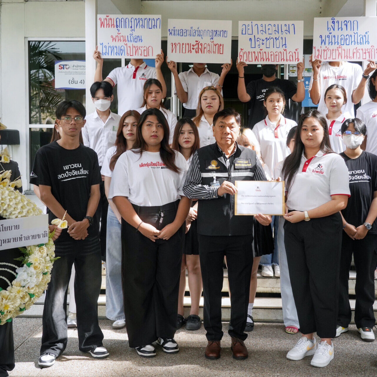 ที่ศูนย์รับเรื่องราวร้องทุกข์ทำเนียบรัฐบาล แกนนำเยาวชนจากเครือข่าย “เด็กรุ่นใหม่ไม่พนัน” และเครือข่ายเยาวชนลดปัจจัยเสี่ยง กว่า 30 คน ยื่นหนังสือถึงนางสาวแพทองธาร ชินวัตร นายกรัฐมนตรี เพื่อแสดงจุดยืนคัดค้านนโยบายพนันออนไลน์ถูกกฎหมาย ที่รัฐบาลเดินหน้าโดยอ้างว่าจะแก้ไขปัญหาพนันที่ผิดกฎหมายและนำเม็ดเงินมาพัฒนาประเทศ หรือให้ทุนการศึกษา