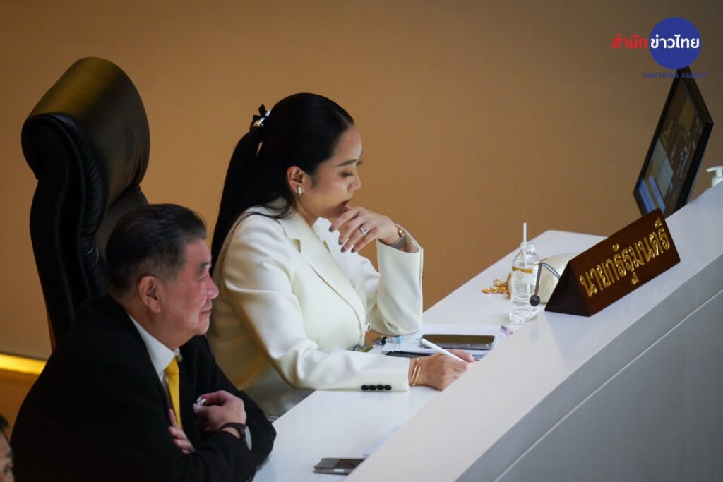 น.ส.แพทองธาร ชินวัตร นายกรัฐมนตรี เดินทางถึงสภาผู้แทนราษฎรในเวลา 08.10 น. โดยมีบรรดาคณะรัฐมนตรีของพรรคเพื่อไทยมารอต้อนรับจำนวนมาก นายกรัฐมนตรี ให้สัมภาษณ์ก่อนเริ่มการอภิปรายไม่ไว้วางใจ ว่า เมื่อคืนนี้นอนหลับสบาย ไม่ได้ตื่นเต้นมาก พร้อมยอมรับว่า เมื่อวานนี้นายทักษิณ ชินวัตร แวะไปเจอที่บ้าน มีหลายประเด็นที่ได้สอบถาม เช่น เรื่องเศรษฐกิจ และนายทักษิณ จะช่วยมอนิเตอร์การอภิปราย “วันนี้สแตนด์บายมีอะไรโทรมาถามได้ เป็นการให้กำลังใจ และเป็นแบบนี้มาโดยตลอดทั้งชีวิตอยู่แล้ว”