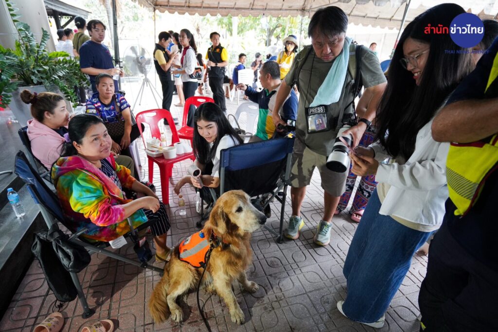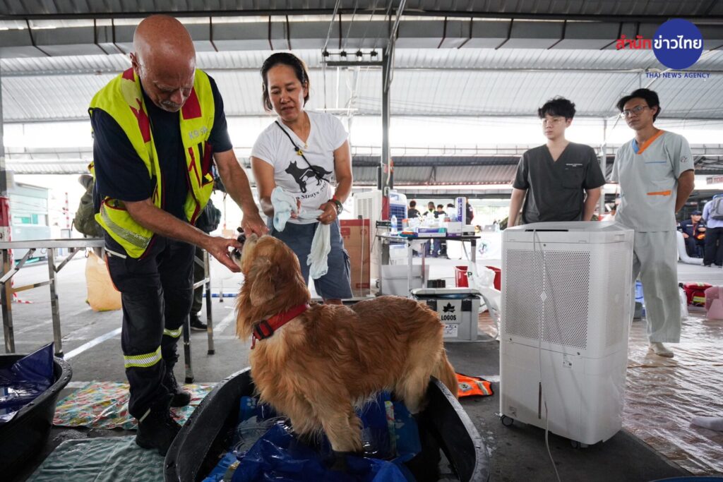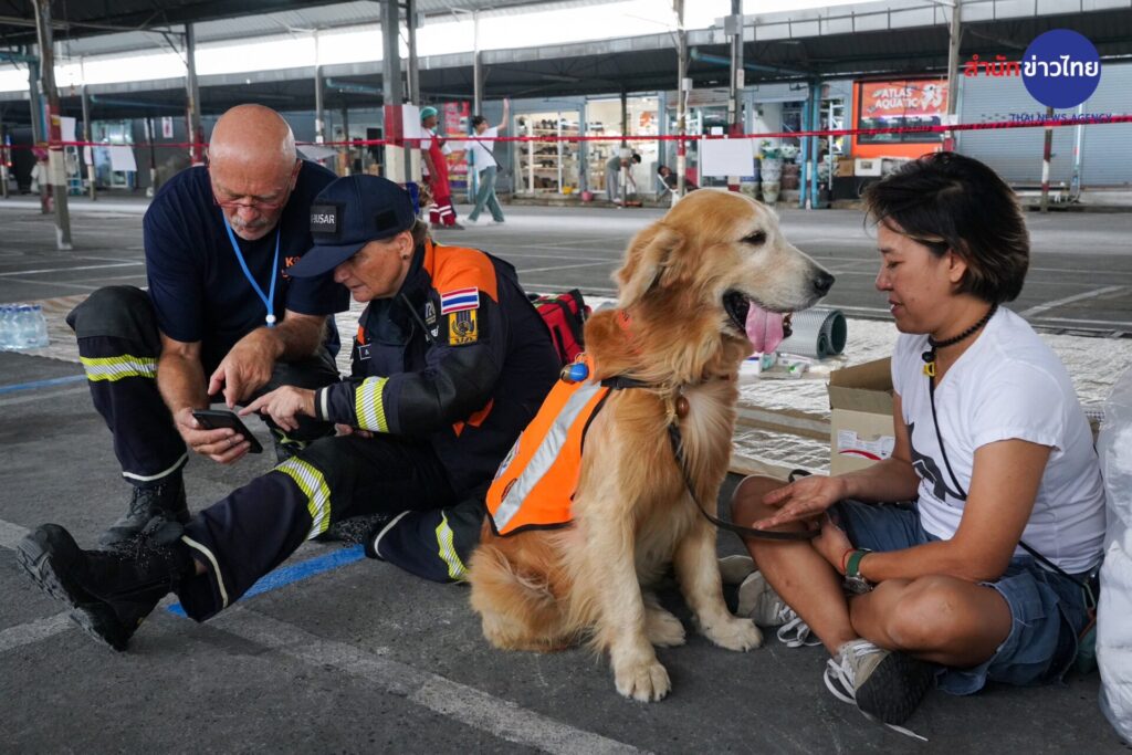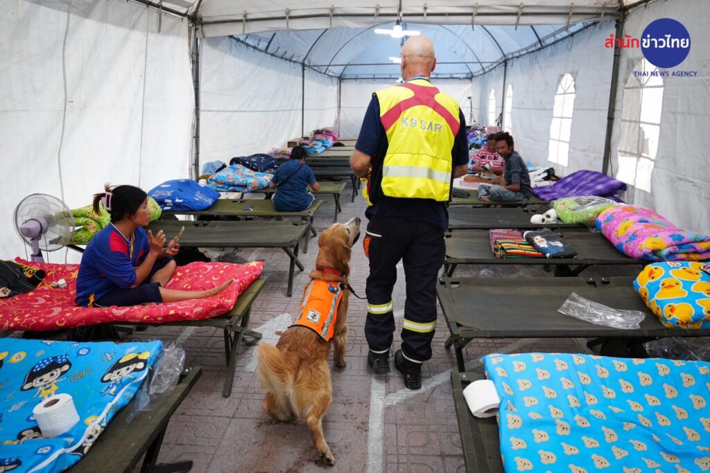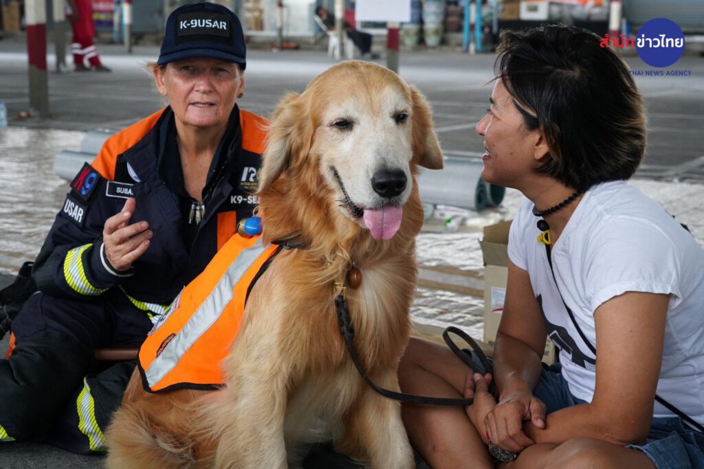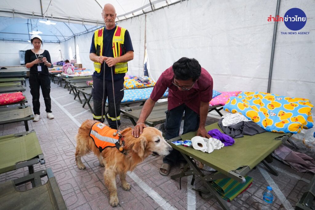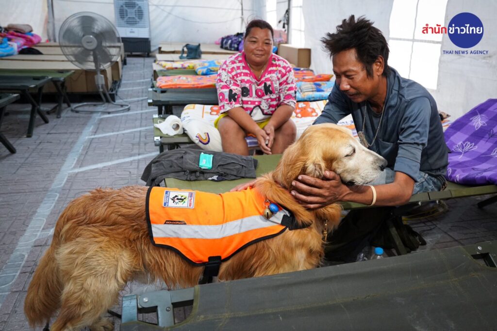 31 มี.ค.2568 “ซาฟารี” สุนัข K-9 เพศผู้ พันธุ์โกลเดินริทรีฟเวอร์ นอกจากจะร่วมปฏิบัติหน้าที่ค้นหาผู้สูญหายเหตุตึกสำนักงานตรวจเงินแผ่นดิน ที่กำลังก่อสร้างถล่ม จากแผ่นดินไหว เมื่อวันที่ 28 มีนาคมที่ผ่านมา อีกหนึ่งหน้าที่คือเข้าไปช่วยเยียวยาจิตใจของญาติพี่น้องที่กำลังเฝ้ารอข่าวการค้นหาผู้สูญหายในซากตึกที่ถล่มลงมา ด้วยการเข้าไปสัมผัสและกอดเพื่อบรรเทาความวิตกกังวล