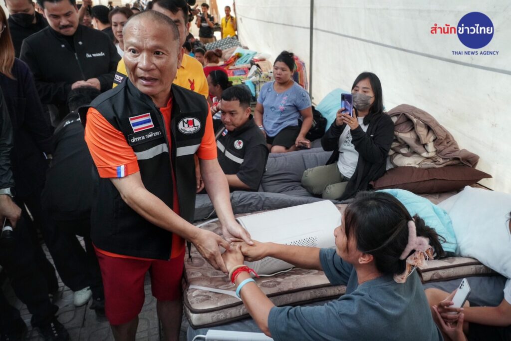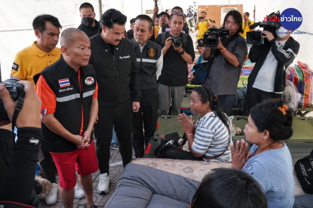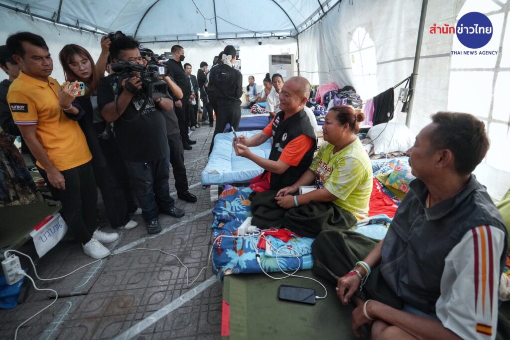 ขณะที่ “กัน จอมพลัง” กล่าวว่า ตนเองดีใจแทนทุกคนที่ “หม่ำ จ๊กมก” มาในวันนี้ เนื่องจากเป็นศิลปินตลกระดับประเทศ และเป็นหนึ่งในคนที่ญาติผู้ประสบภัยอยากเจอมากที่สุด อยากขอบคุณผู้ใหญ่ใจดีที่มาช่วย ตนเป็นเพียงแค่สะพานบุญ แต่คนที่ช่วยจริงๆ คือพวกเขาเหล่านี้ โดยตอนนี้ยังมีญาติที่รอคอยความหวังอีกประมาณ 30 คน ซึ่งตนจะดูแลแบบนี้ไปเรื่อยๆ จนกว่าจะจบ เพราะบางคนไม่มีที่ไปจริงๆ ตอนนี้ยังไม่มีสิ่งที่ขาดเหลือ แต่หากใครอยากเข้ามาช่วยก็แล้วแต่ศรัทธา ตนเองยินดีต้อนรับ