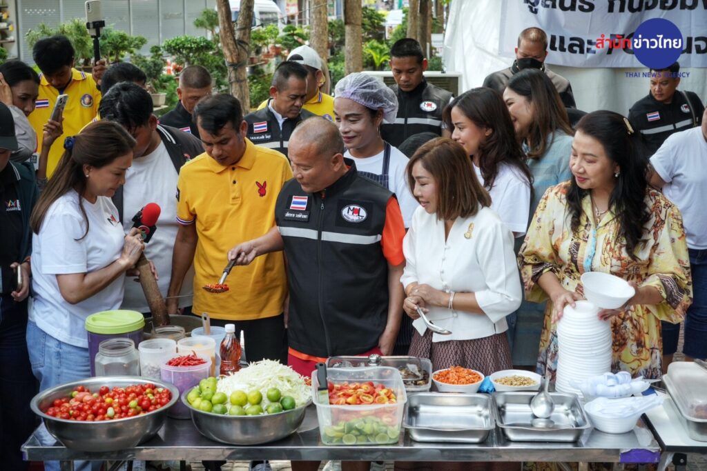 28 เม.ย.68 นายเพ็ชรทาย วงษ์คำเหลา หรือ หม่ำ จ๊กมก และนายโอบะ เสียงเหน่อ นายกมูลนิธิศิลปินตลกแห่งประเทศไทย พร้อมด้วย นายกัณฐัศว์ พงศ์ไพบูลย์เวชย์ หรือ กัน จอมพลัง และ ดร.มนัส โนนุช ประธานสภาสังคมสงเคราะห์แห่งประเทศไทย ในพระบรมราชูปถัมภ์ ร่วมทำอาหารอีสาน ประกอบด้วย ส้มตำ ไก่ทอด และข้าวเหนียว ที่บริเวณศูนย์พักพิงของญาติผู้สูญหาย จากเหตุอาคารสำนักงานการตรวจเงินแผ่นดิน (สตง.) แห่งใหม่ถล่ม เพื่อเป็นกำลังใจ หลังครบ 1 เดือนที่เกิดเหตุการณ์ดังกล่าว