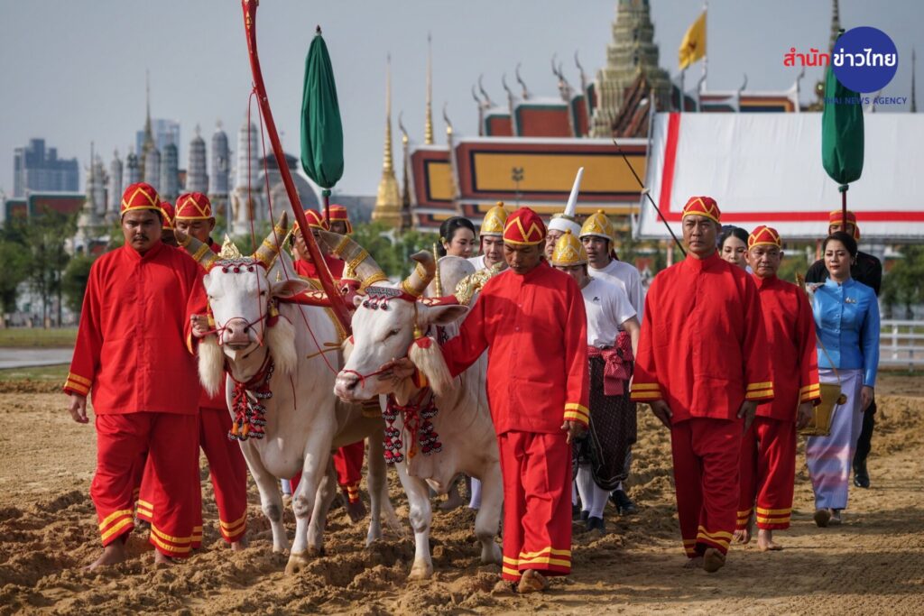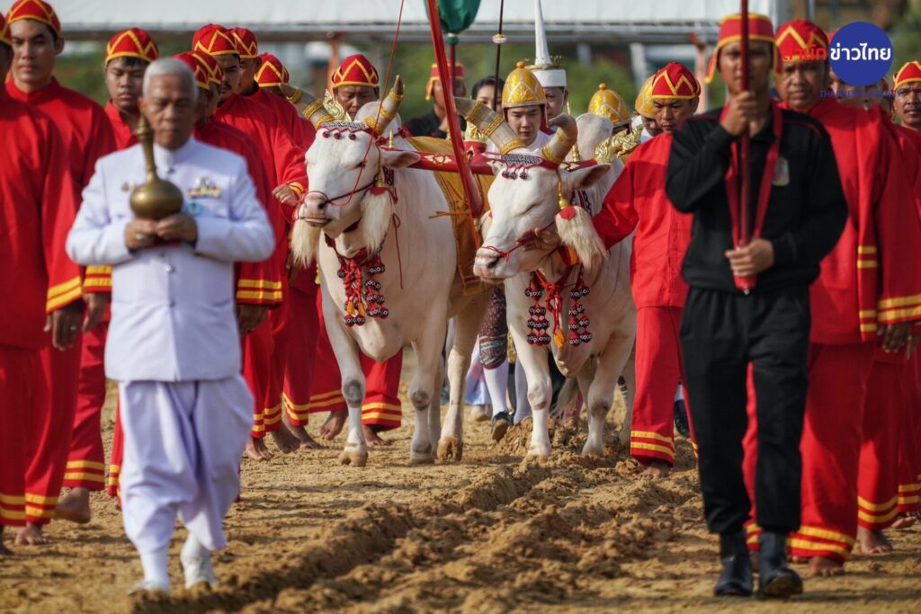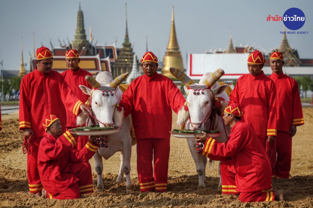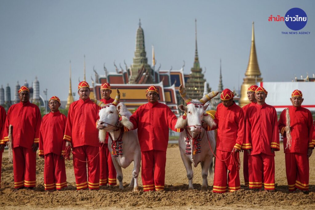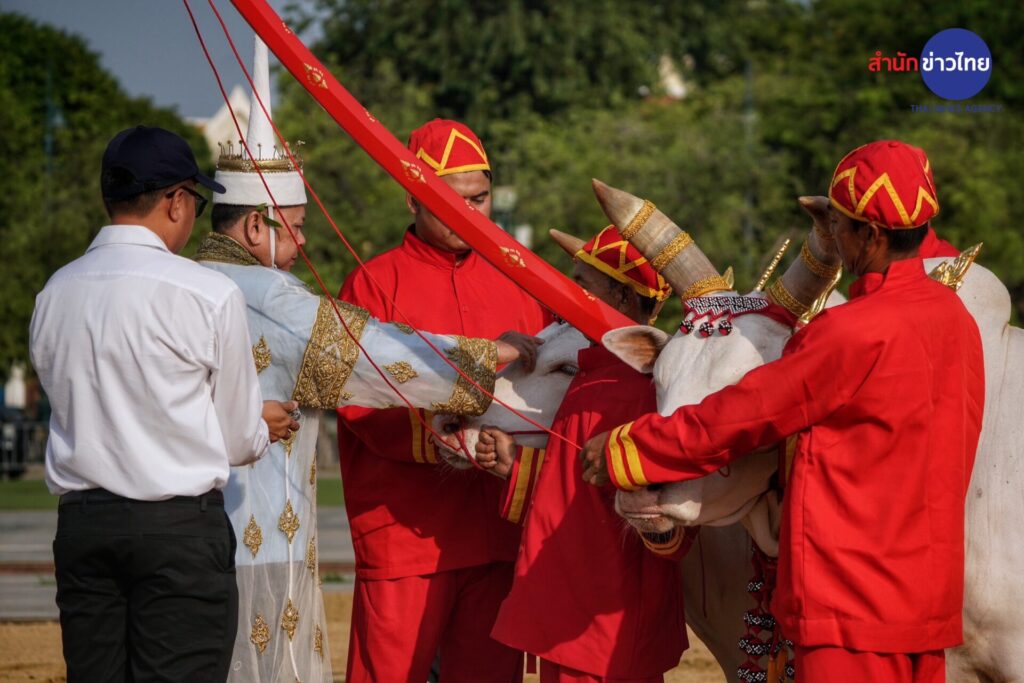 ทั้งนี้ พระโคแรกนาขวัญ 1 คู่ ได้แก่ พระโคพอ พระโคเพียง และพระโคสำรอง ได้แก่ พระโคเพิ่ม พระโคพูล ประจำปีพุทธศักราช 2568 เป็นโคพันธุ์ขาวลำพูน มีสีผิวขาวอมชมพู ขนสีขาวสะอาด ทั้งลำตัวไม่มีจุดด่างดำ หรือสีอื่นบนลำตัว เขามีสีขาว ลำตัวเป็นลำเทียน เขาทั้งสองข้างมีลักษณะโค้งสวยงาม ดวงตาแจ่มใสสีน้ำตาลอ่อน ขนตาสีชมพู บริเวณจมูกขาว กีบสีขาว ขนหางเป็นพวงสีขาวยาว ลำตัวช่วงขาหลังและกีบมีความสมบูรณ์แข็งแรง เวลายืนและเดินสง่า