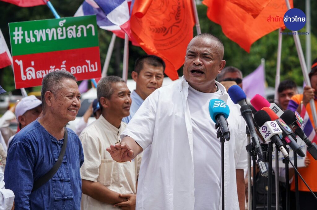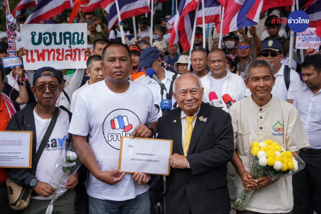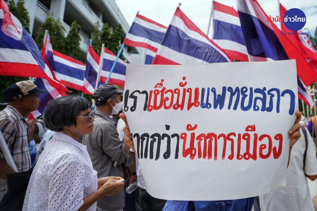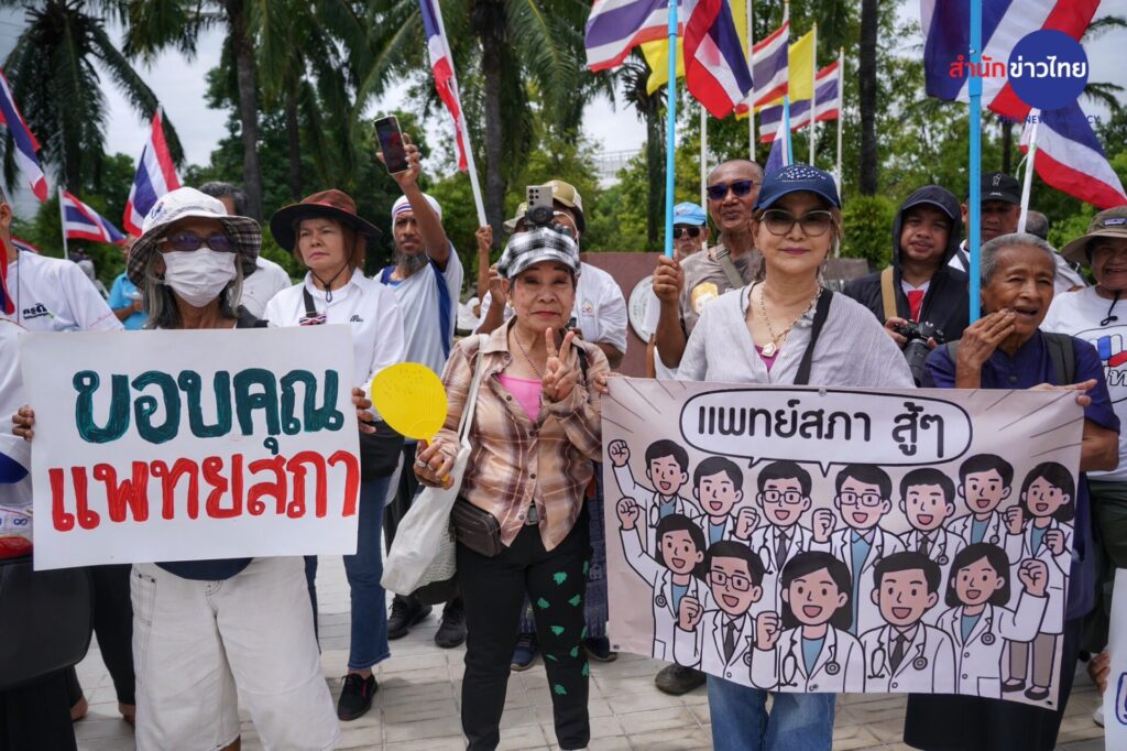 กลุ่มเครือข่ายนักศึกษาประชาชนปฏิรูปประเทศไทย (คปท.) พร้อมแนวร่วม เดินขบวนมาที่อาคารสำนักงานเลขาธิการแพทยสภา กระทรวงสาธารณสุข ให้กำลังใจแพทยสภา ก่อนการประชุมคณะกรรมการแพทยสภา พรุ่งนี้ (12 มิ.ย.) ซึ่งมีวาระพิจารณามติการลงโทษแพทย์ 3 คนจากโรงพยาบาลราชทัณฑ์และโรงพยาบาลตำรวจ กรณี การรักษาและส่งตัว นายทักษิณ ชินวัตร อดีตนายกรัฐมนตรี