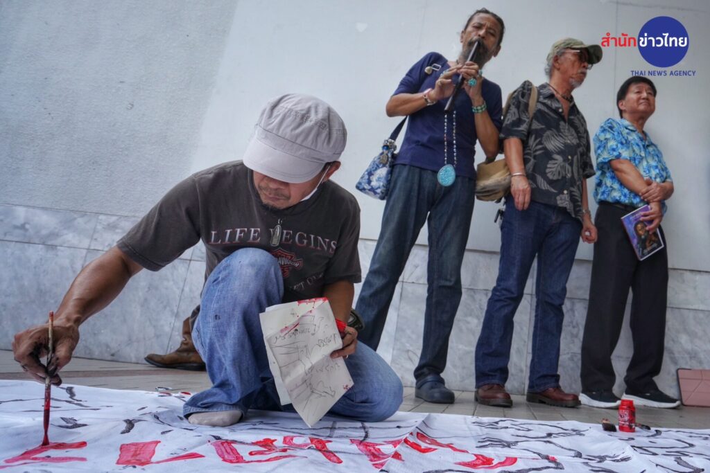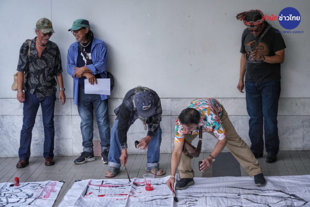 นอกจากนี้ กลุ่มศิลปินยังแสดงพลังเชิงสัญลักษณ์ด้วยการร่วมกันวาดภาพด้วยสีพู่กัน เพื่อสะท้อนความจริงและปกป้องบ้านเมืองผ่านพลังของศิลปะและจิตวิญญาณ