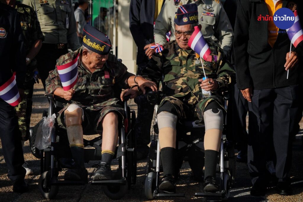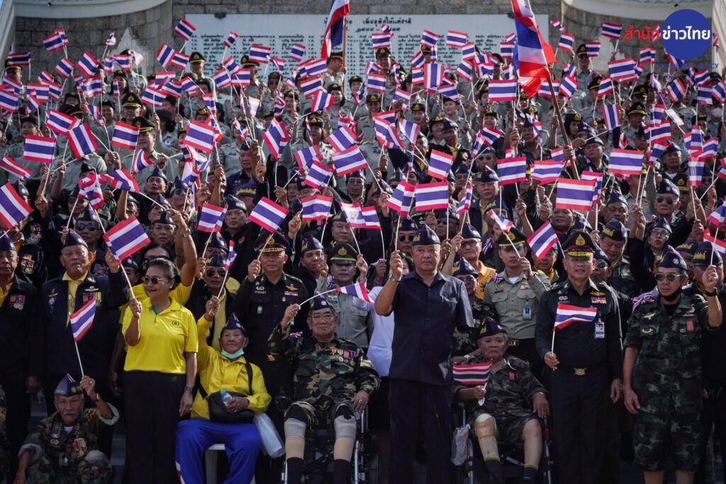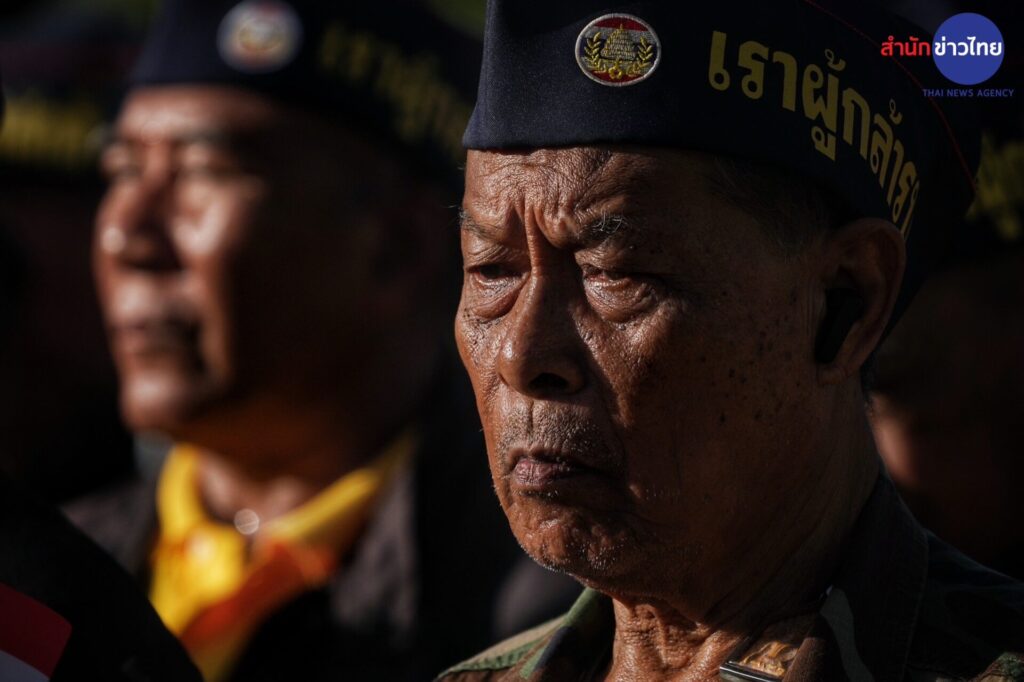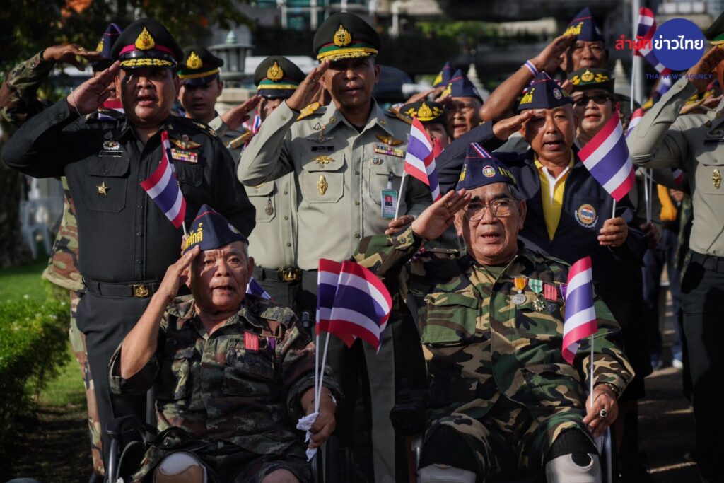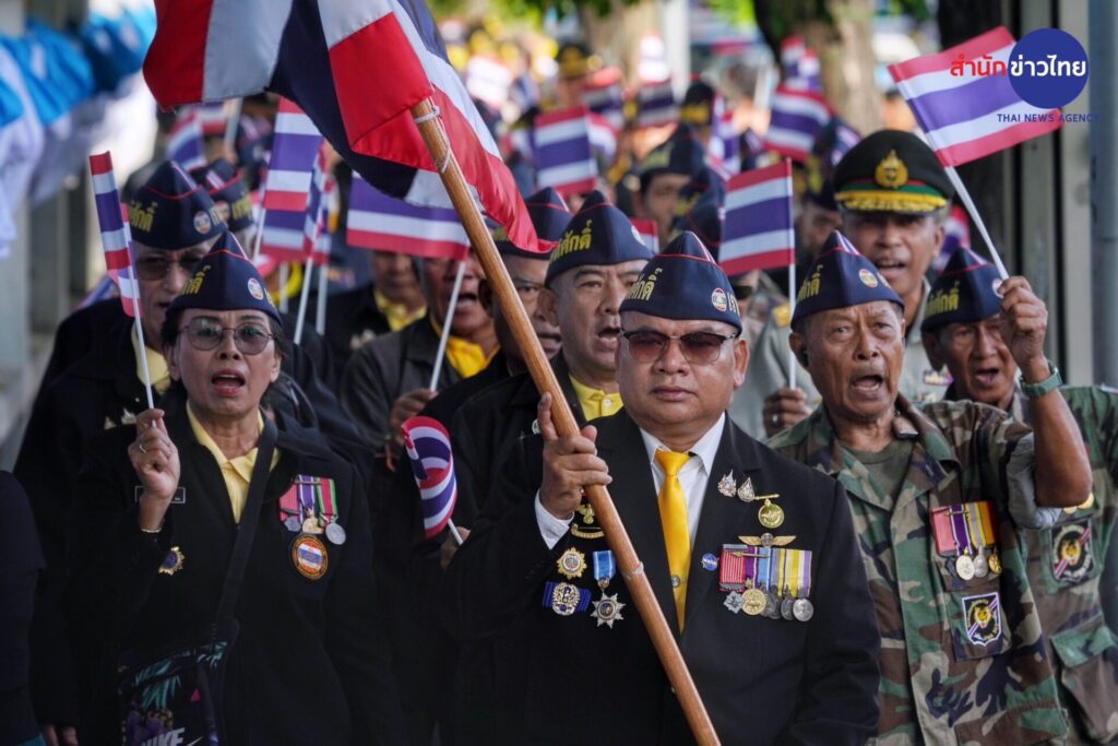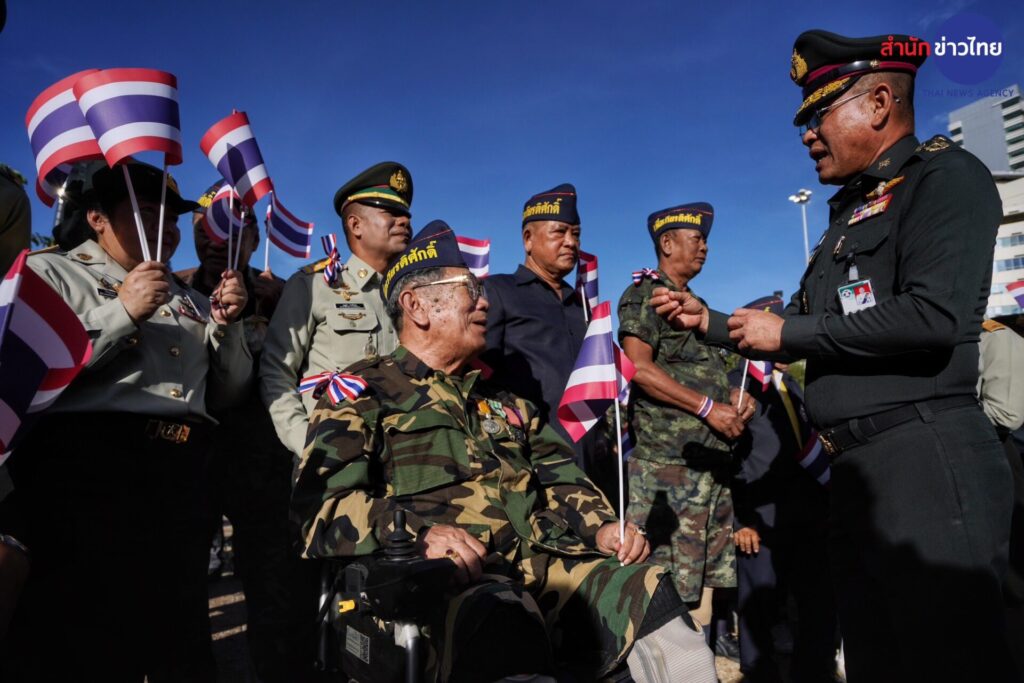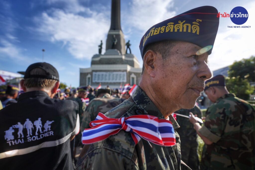 เหล่าทหารผ่านศึกแสดงพลังปกป้องแผ่นดิน และสดุดีนักรบผู้กล้า ปกป้องประชาชนในเหตุสู้รบชายแดนไทย-กัมพูชากลางอนุสาวรีย์ชัยสมรภูมิ