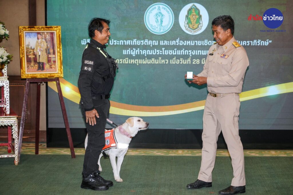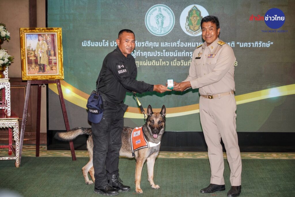 20 ส.ค.2568 กรุงเทพมหานคร มอบโล่ประกาศเกียรติคุณ และเครื่องหมายเชิดชูเกียรติ “นคราภิรักษ์” ให้แก่ USAR Thailand ทีม K9 สำนักงานตำรวจแห่งชาติ และทีมสุนัขทหาร อาสาสมัครและผู้ที่เกี่ยวข้องที่ปฏิบัติภารกิจช่วยเหลือและค้นหาผู้ประสบภัยจากเหตุการณ์แผ่นดินไหว รวมถึงภาครัฐและรัฐวิสาหกิจ องค์กรเอกชน อาสาสมัคร และผู้แทนมูลนิธิ ที่สนับสนุนบุคลากรซึ่งมีความสามารถ รวมทั้งวัสดุอุปกรณ์ เครื่องอุปโภคบริโภค และสิ่งของต่าง ๆ ในการปฏิบัติภารกิจ ตึกสตง. ถล่ม เขตจตุจักร สำหรับประกาศเกียรติคุณและเครื่องหมายเชิดชูเกียรติเข็มนคราภิรักษ์ เป็นเครื่องหมายเชิดชูเกียรติของกรุงเทพมหานครที่มอบให้แก่ผู้ประกอบคุณความดี ที่สมควรได้รับการยกย่องในการทำคุณประโยชน์ เสียสละช่วยเหลือสังคม และเป็นแบบอย่างที่ดีแก่สังคม