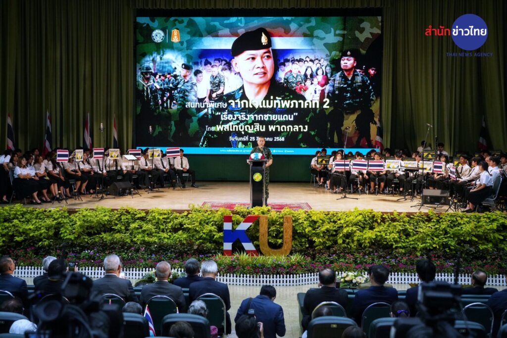 25 ส.ค.2568 พลโทบุญสิน พาดกลาง แม่ทัพภาคที่ 2 พบบุคลากรและนิสิตมหาวิทยาลัยเกษตรศาสตร์ ร่วมสนทนาพิเศษ “เรื่องจริงจากชายแดน” โดยมีผู้ร่วมงาน ทั้งนิสิตปัจจุบัน และนิสิตเก่า บุคลากร เต็มความจุล้นออกจากห้องประชุม