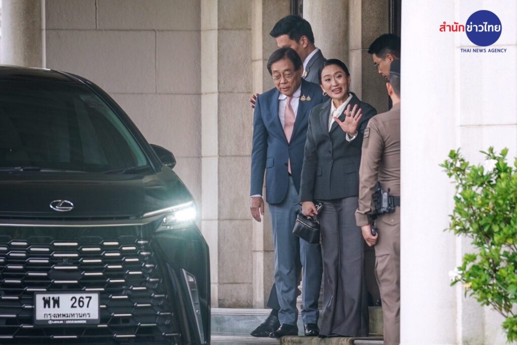 โดยก่อนขึ้นรถนางสาวแพทองธาร ได้พูดคุยกับนายพิชัย อยู่ครู่หนึ่ง จากนั้นได้ขึ้นรถเพื่อเดินทางออกจากทำเนียบรัฐบาล โดยได้ลดกระจกส่งมินิฮาร์ท ให้กับสื่อมวลชนที่รอบันทึกภาพพร้อมยิ้ม และโบกมือลาสื่อมวลชน ที่ทำเนียบรัฐบาล