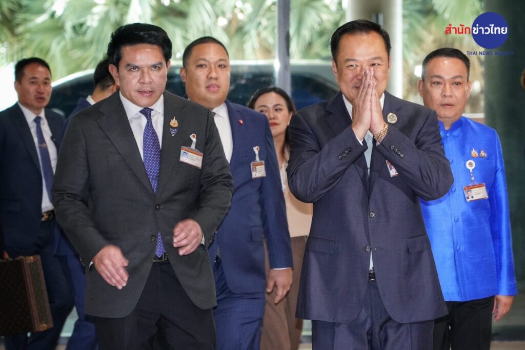 นายอนุทิน ชาญวีรกูล หัวหน้าพรรคภูมิใจไทย เดินทางเข้าสภาเมื่อเวลา 09.45 น. โดยผู้สื่อข่าวพยายามถามถึงกรณีพรรคประชาชน แถลงสนับสนุนนายอนุทิน เป็นนายกรัฐมนตรี ฝั่งพรรคเพื่อไทย ได้ดำเนินการยื่นทูลเกล้าฯ ยุบสภา แต่นายอนุทิน ไม่ได้ตอบคำถาม บอกแค่ว่าขอไปประชุมก่อน