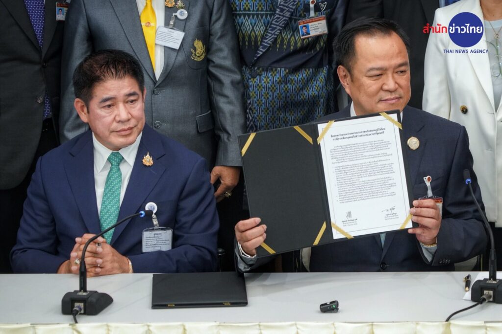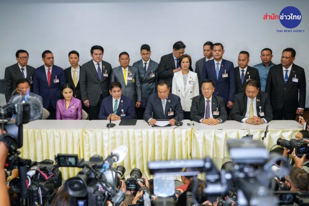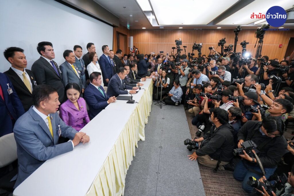 นายอนุทิน ชาญวีรกูล หัวหน้าพรรคภูมิใจไทย แถลงจัดตั้งรัฐบาล และลงนามรับ 5 เงื่อนไขของพรรคประชาชน ว่า ตนและบรรดาสมาชิกสภาผู้แทนราษฎรทั้ง 146 คนที่อยู่ในที่นี้ จะขอแถลงข่าวเกี่ยวกับการจัดตั้งรัฐบาล ซึ่งเมื่อเช้าที่ผ่านมา ทุกท่านคงได้รับรับทราบข้อมูลจากการแถลงข่าวของหัวหน้าพรรคประชาชนเป็นที่เรียบร้อยแล้ว ตนได้รับเงื่อนไข และข้อสรุปออกมาเป็นข้อตกลงร่วมระหว่างพรรคประชาชนกับพรรคภูมิใจไทย ว่าด้วยกรณีการเลือกบุคคลไปดำรงตำแหน่งนายกรัฐมนตรี แจ้งให้กับสมาชิกสภาผู้แทนราษฎรทั้ง 146 คนรับทราบ