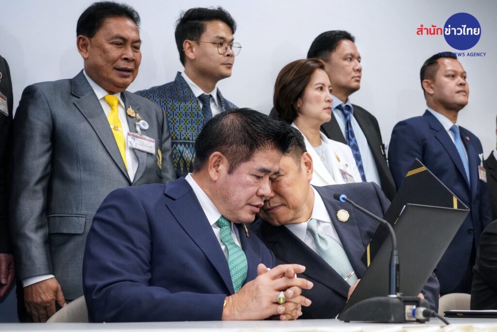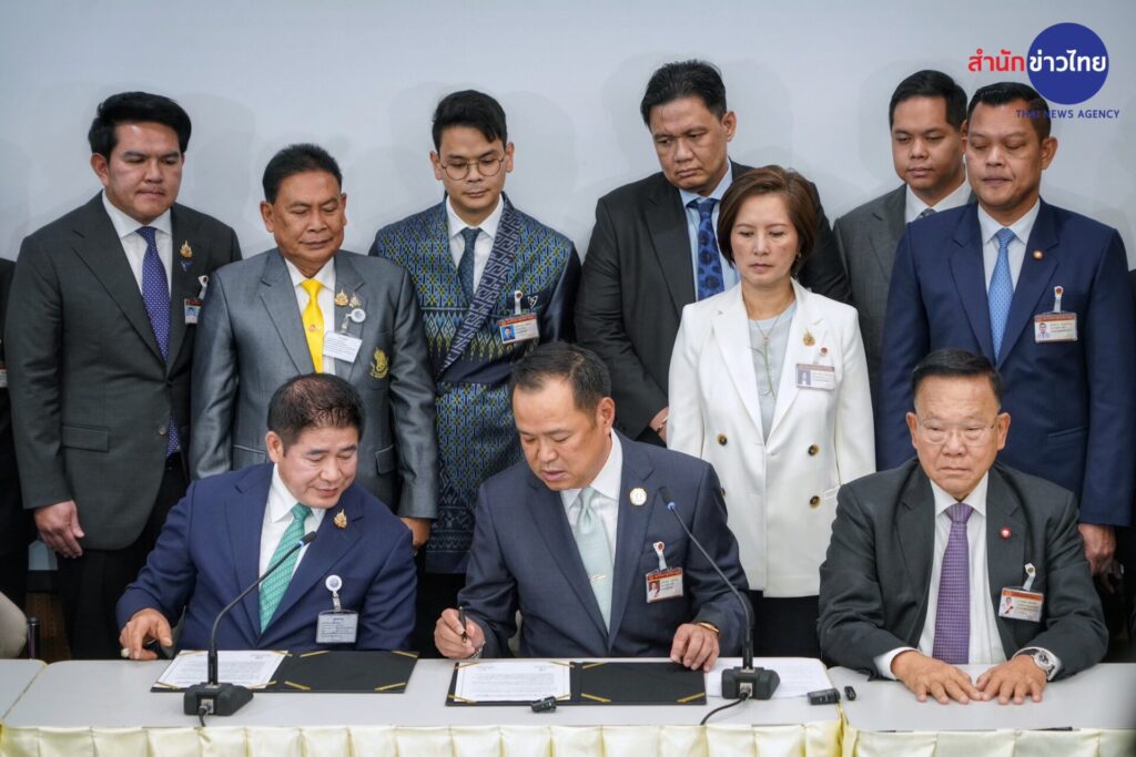 ขณะที่ ตัวแทนจากพรรคพลังประชารัฐ นำโดย ชัยมงคล ไชยรบ สส.สกลนคร และรองหัวหน้าพรรคพลังประชารัฐ และตามมาด้วยนายสันติ พร้อมพัฒน์ รองหัวหน้าพรรคพลังประชารัฐ ที่นำ สส.เพชรบูรณ์ มาร่วมด้วย