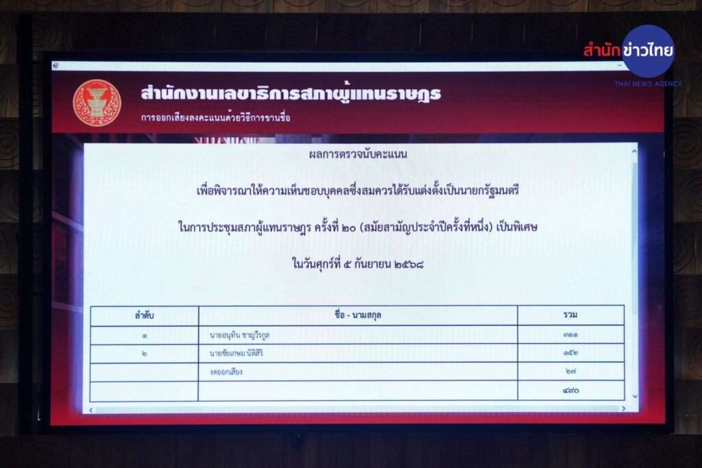 ผลโหวตสภาฯ เลือก “อนุทิน ชาญวีรกูล” ว่าที่นายกรัฐมนตรี คนที่ 32 ของประเทศไทย