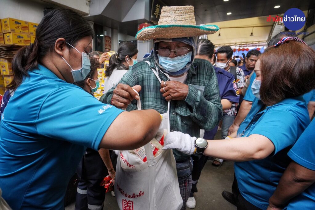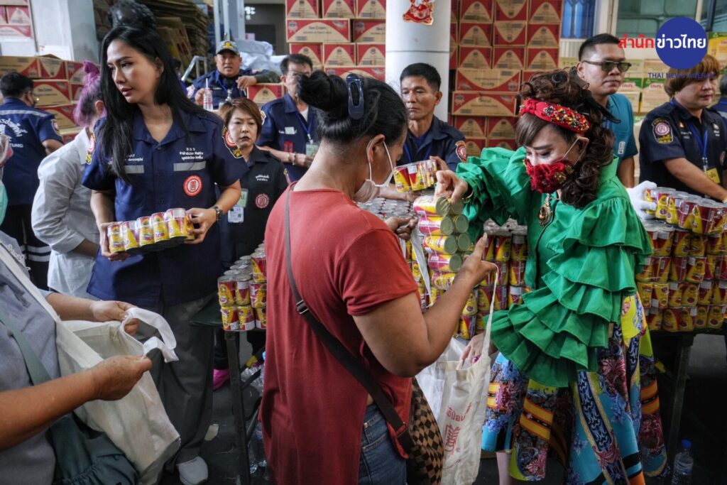 โดยสิ่งของที่แจกประกอบด้วย ข้าวสาร ปลากระป๋อง บะหมี่กึ่งสำเร็จรูป น้ำปลา น้ำมันพืช ขนม เสื้อผ้า รองเท้าแตะฟองน้ำ ฯลฯ บรรจุถุงผ้ามูลนิธิฯ