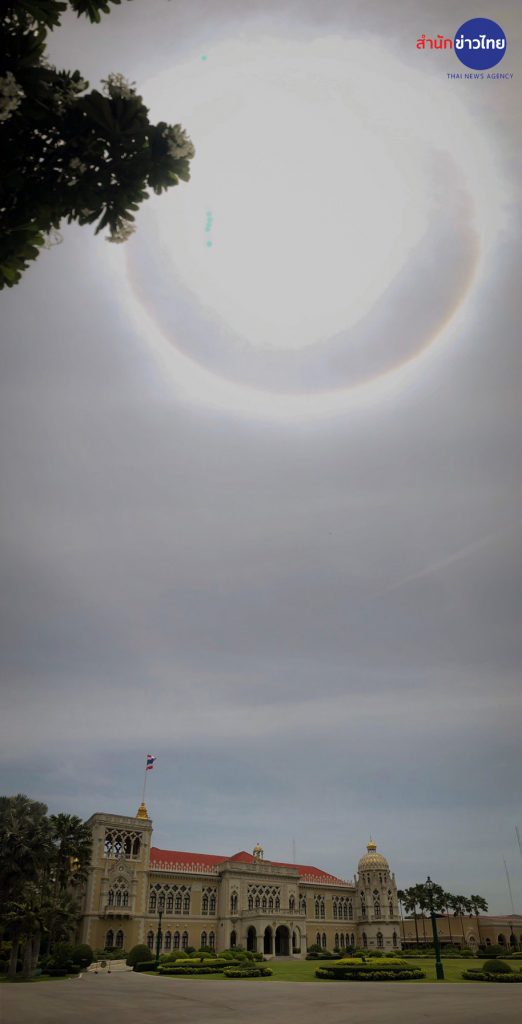 ทำเนียบฯ 18 ส.ค. – เมื่อเวลาประมาณ 11.30 น. ของวันนี้ (18 ส.ค.2563) บริเวณท้องฟ้า ณ ตึกไทยคู่ฟ้า ทำเนียบรัฐบาล ได้เกิดปรากฎการณ์พระอาทิตย์ทรงกลดยังความตื่นเต้นให้กับข้าราชการ และ สื่อมวลชนบริเวณทำเนียบรัฐบาล เพราะโบราณเชื่อว่า การเกิดเหตุการณ์แบบนี้ นับเป็นเรื่องราวที่ดี และเชื่อว่าจะเกิดสิริมงคล .- สำนักข่าวไทย
