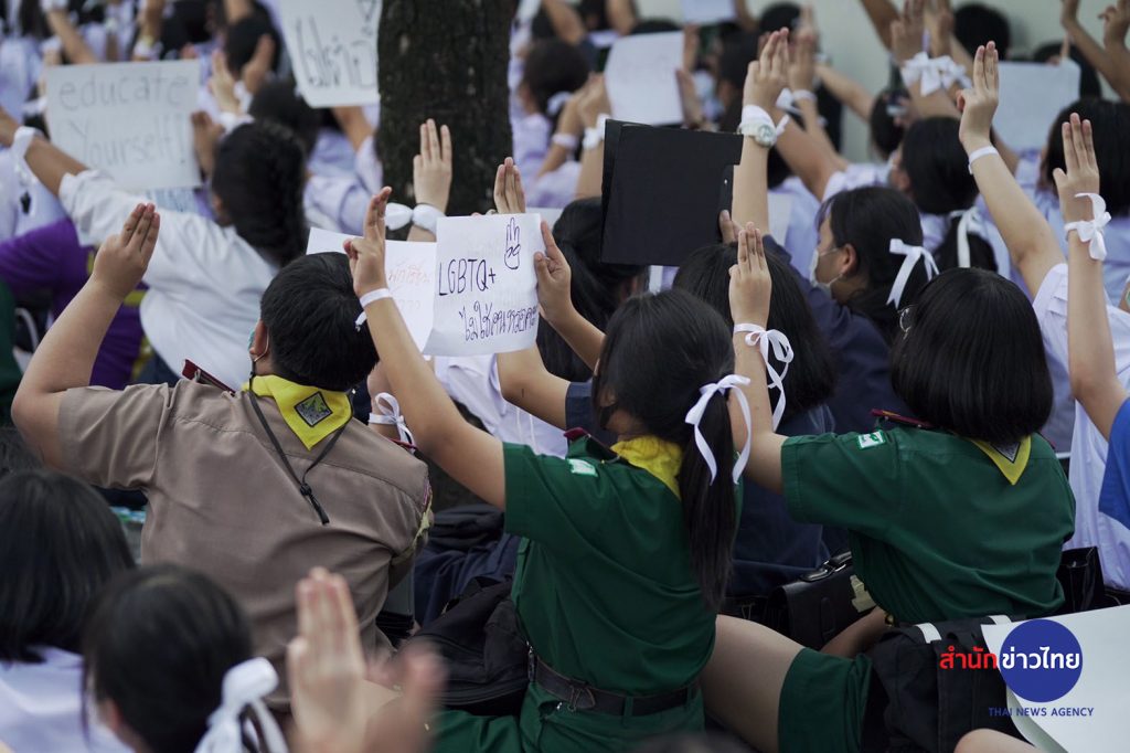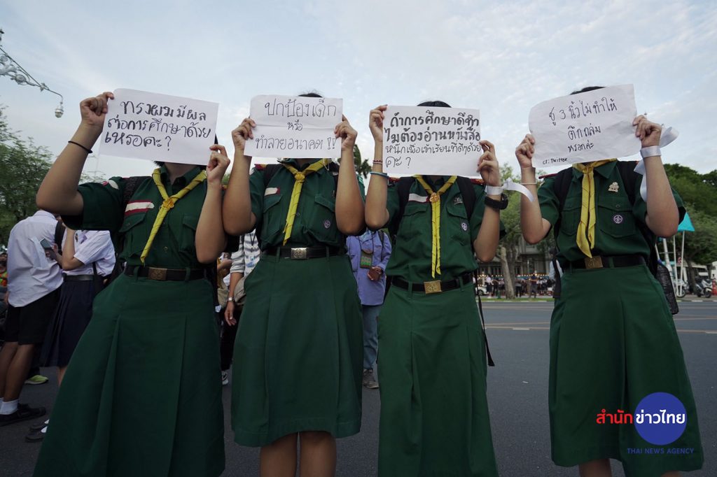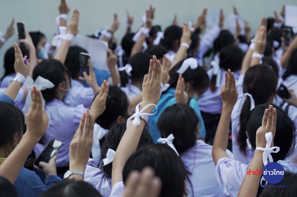 18 ส.ค.-กลุ่มนักเรียนหลายสถาบัน ร่วมผูกโบว์ขาว เป่านกหวีด ไล่รัฐมนตรีศึกษาฯ ลาออก หลังล้มเหลวบริหารงานด้านการศึกษาและปล่อยครูคุกคามนักเรียน ขณะที่รัฐมนตรี ออกมารับฟังข้อเรียกร้อง รับปากจะนำปัญหาที่รับฟัง เร่งแก้ไข