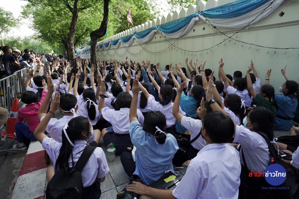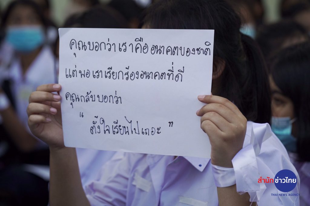 ทั้งนี้ในช่วงท้ายการชุมนุม ตัวแทนและกลุ่มนักเรียน ได้ประกาศข้อเรียกร้อง 3 ข้อ 1.หยุดคุกคามประชาชน 2.ร่างรัฐธรรมนูญใหม่ 3.ยุบสภา และร่วมชู 3 นิ้ว ขณะร้องเพลงเคารพธงชาติ ในเวลา 18.00 น. พร้อมตะโกนเผด็จการจงพินาศ ประชาธิปไตยจงเจริญ และร่วมกันผูกโบว์สีขาวที่ประตูและรั้วกระทรวงศึกษาธิการ ก่อนแยกย้ายกันกลับบ้าน