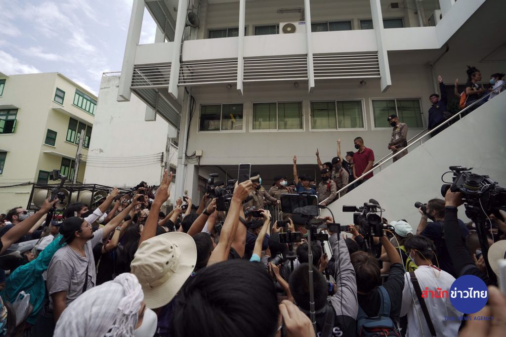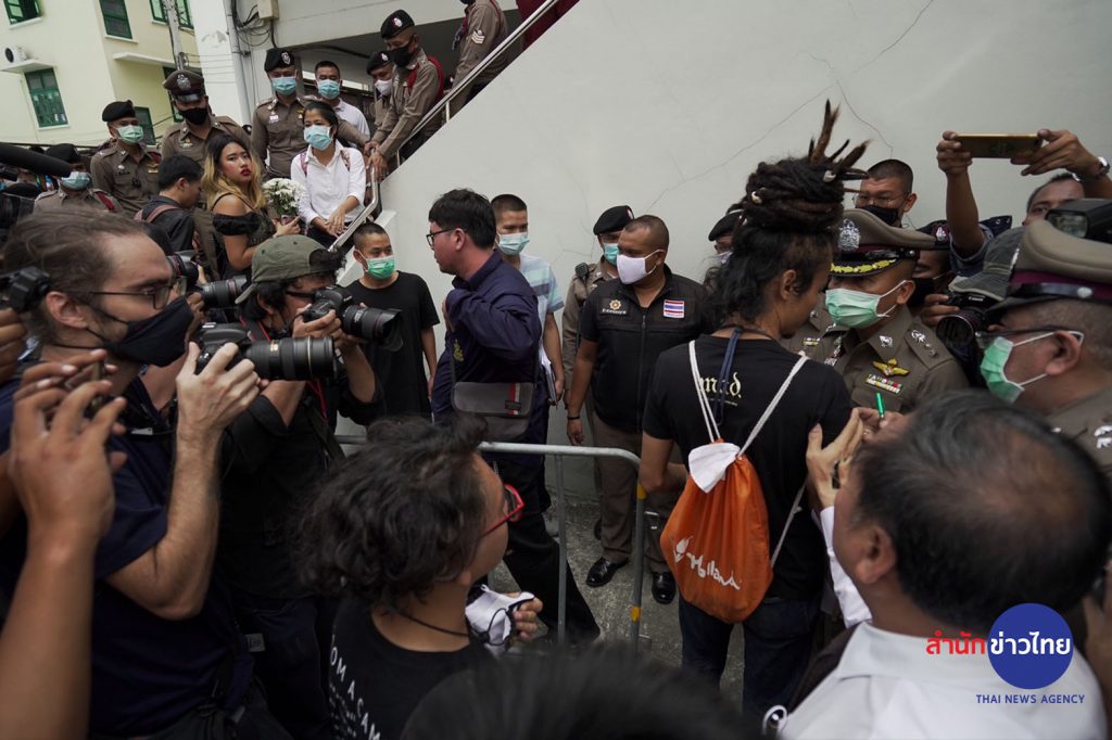 28 ส.ค.-ไผ่ ดาวดิน แกนนำกลุ่มดาวดิน พร้อมกลุ่มเยาวชนปลดแอก เดินทางมาที่ สน.สำราญราษฎร์ เพื่อรับทราบข้อกล่าวหาตามหมายเรียก คดีร่วมกันชุมนุมที่อนุสาวรีย์ประชาธิปไตย