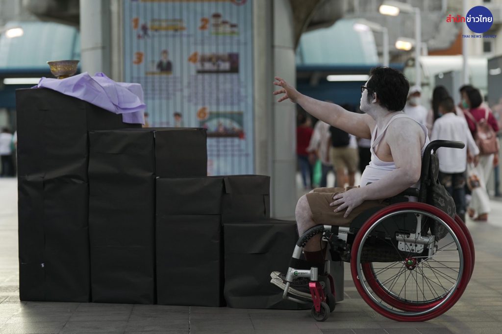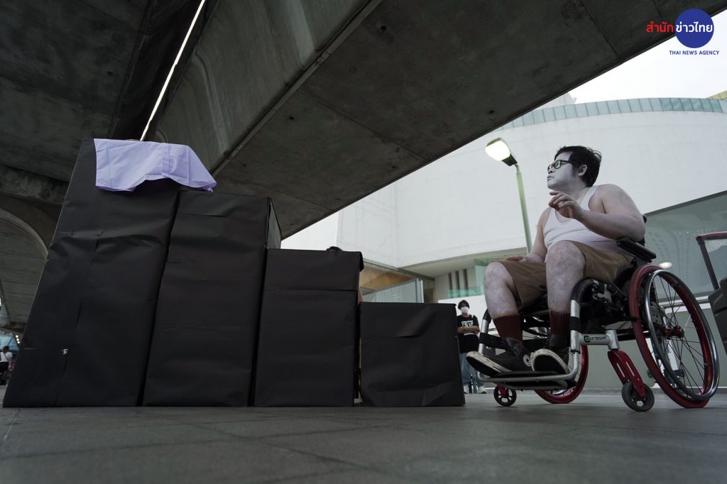 กทม. 6 ก.ย.- วันนี้ (6 ก.ย.63) กลุ่ม Allism แสดงออกเชิงสัญลักษณ์ เรียกร้องการแก้ไข รธน.เพื่อคนพิการ