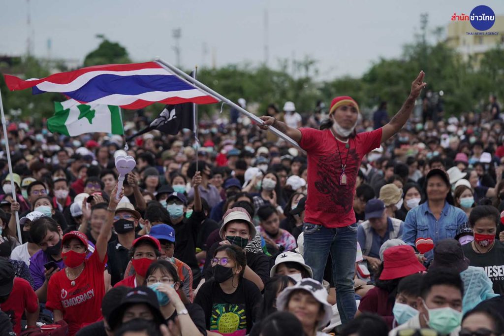 สนามหลวง 19 ก.ย. – เวลา 18.55 น. พิธีกรบนเวทีประกาศเชิญชวนประชาชนและผู้ชุมนุม เดินขบวนไปที่ทำเนียบรัฐบาลในวันที่ 20 ก.ย.นี้ เพื่อขับไล่ พล.อ.ประยุทธ์ จันทร์โอชา นายกฯ และ รมว.กลาโหม โดยมีผู้ชุมนุมร่วมกำมือพร้อมร่วมตะโกนขับไล่ “เผด็จการออกไป”