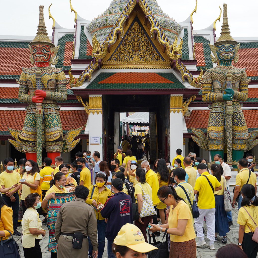 13 ต.ค. 2563 วัดพระศรีรัตนศาสดาราม (วัดพระแก้ว) บรรยากาศประชาชนจำนวนมากเดินทางมาเข้ากราบถวายบังคม พระบรมรูปสมเด็จพระบูรพมหากษัตริยาธิราช ที่ปราสาทพระเทพบิดร เนื่องจาก พระบาทสมเด็จพระเจ้าอยู่หัว ทรงพระกรุณาโปรดเกล้าฯ พระราชทานพระบรมราชานุญาตให้สาธุชนเข้ากราบถวายบังคม ตั้งแต่เวลา 08.00-17.00 น.