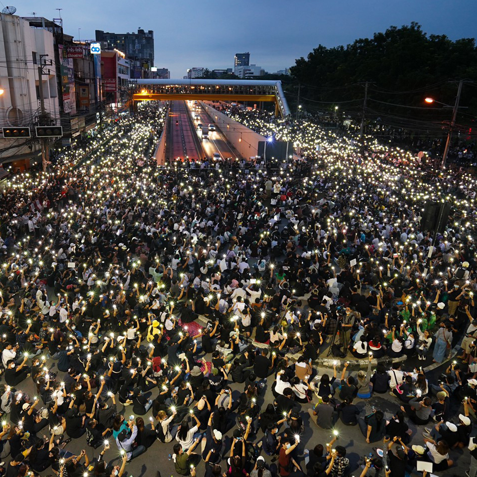 19 ต.ค. – 18.08 น. มวลชนคณะราษฎร 63 ที่ชุมนุมบริเวณแยกเกษตร เริ่มเปิดไฟฉายจากมือถือ แสดงออกเชิงสัญลักษณ์