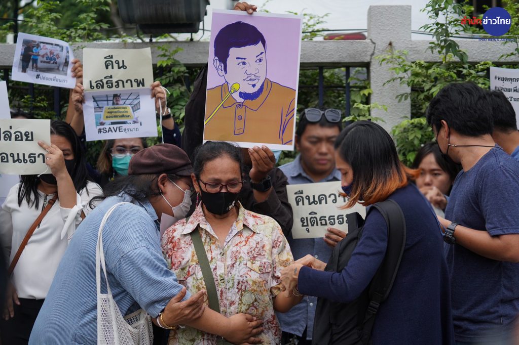 กรุงเทพฯ 28 ต.ค. – กลุ่มดีจัง ยังทีม (ดีจัง Young Team) เดินทางมาทำกิจกรรมหน้าศาลอาญา ถนนรัชดา หลังครบกำหนดฝากขังผัดแรก ของนายสุรนาท แป้นประเสริฐ หรือ ตัน ผู้ต้องหาในคดีอาญา มาตรา 110