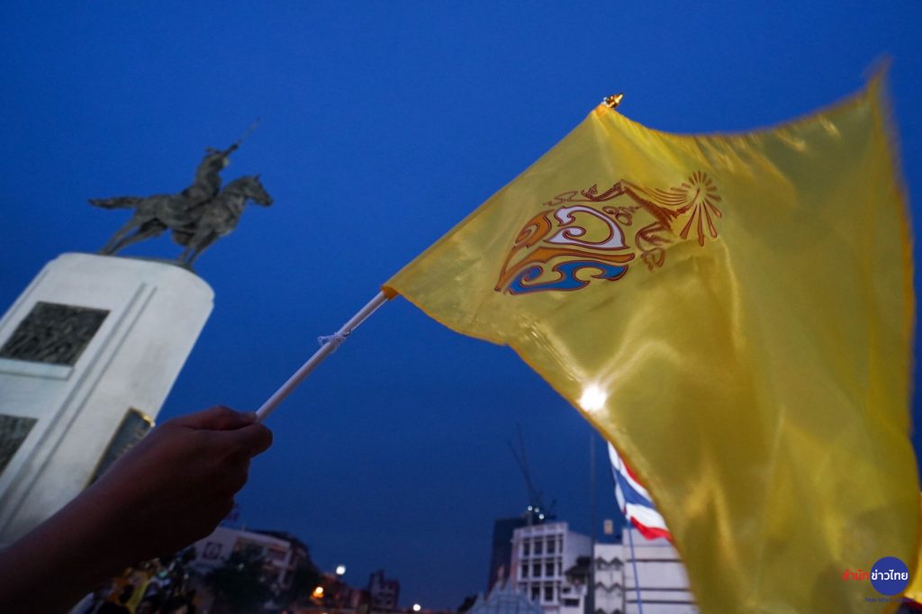 วงเวียนใหญ่ 28 ต.ค.- บรรยากาศที่บริเวณวงเวียนใหญ่ ประชาชนส่วนใหญ่พร้อมใจสวมใส่เสื้อสีเหลือง ทยอยเดินทางมารวมตัวกันบริเวณอนุสาวรีย์สมเด็จพระเจ้าตากสินมหาราช ตามที่ กลุ่มคนอยู่ฝั่งธนฯ อยู่อย่างจงรัก ตายอย่างภักดี นัดหมาย 18.00 น. เพื่อร้องเพลงชาติและเพลงสรรเสริญพระบารมี ซึ่งเป็นการแสดงออกถึงการปกป้องสถาบัน
