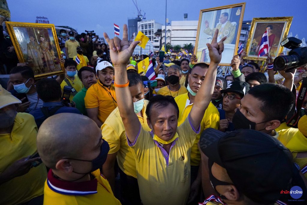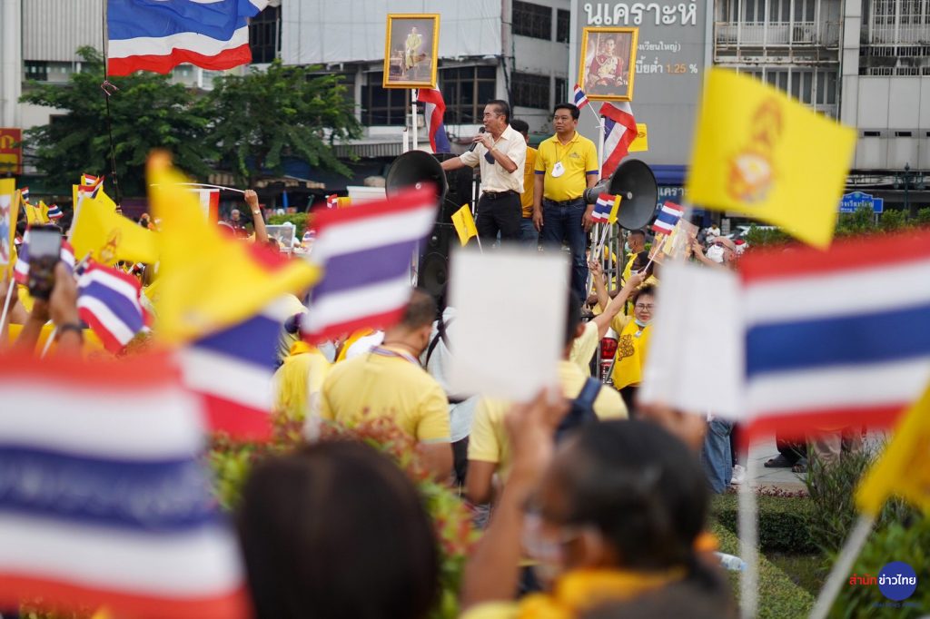 โดยได้มีการนำรถติดตั้งเครื่องขยายเสียงมาทำเป็นเวทีปราศรัยชั่วคราว สลับกันขึ้นเวที พูดถึงแนวทางปกป้องสถาบัน และการรวมตัวกันด้วยความจงรักภักดี อีกทั้งพระราชกรณียกิจที่สร้างคุณประโยชน์ให้แก่ประเทศโดยมี นพ.วรงค์ เดชกิจวิกรม แกนนำกลุ่มไทยภักดี ขึ้นเวทีปราศรัยเน้นย้ำจุดยืน ไม่เห็นด้วยกับ 3 ข้อเรียกร้องของกลุ่มคณะราษฎร