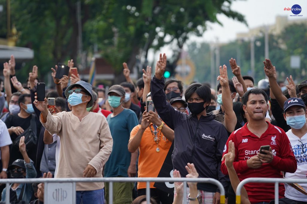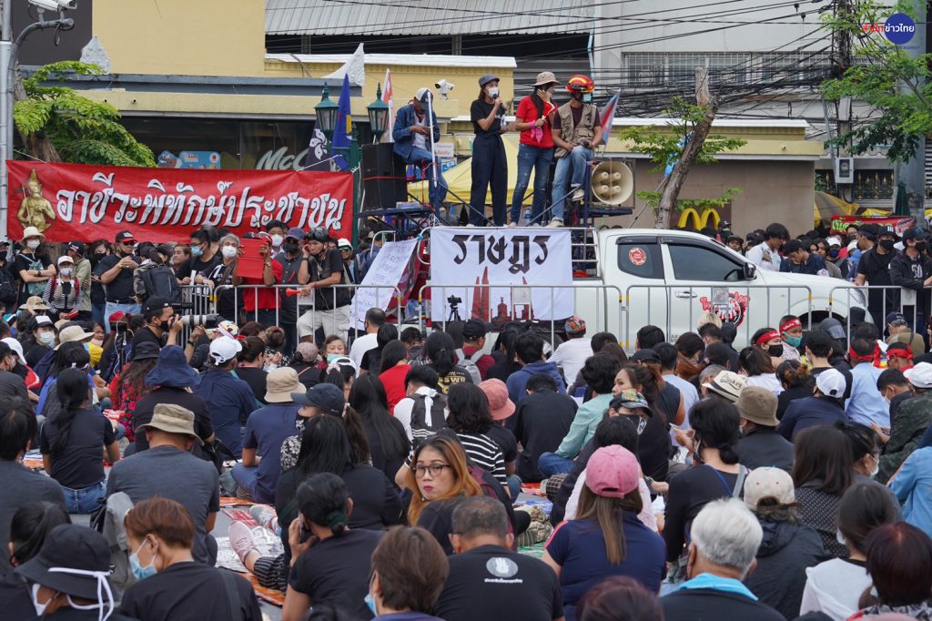 ที่อนุสาวรีย์ประชาธิปไตยฝั่งแมคโดนัลด์ มวลชนกลุ่มราษฎรทยอยเดินทางมารอร่วมการชุมนุมอย่างต่อเนื่อง ก่อนเคลื่อนขบวนไปยื่นจดหมายของราษฎร ซึ่งแกนนำบนรถขยายเสียงยังคงปราศรัยขับไล่ พลเอกประยุทธ์จันทร์โอชา นายกรัฐมนตรี พร้อมกล่าวถึงการบริหารงานของรัฐบาลที่ผ่านมา