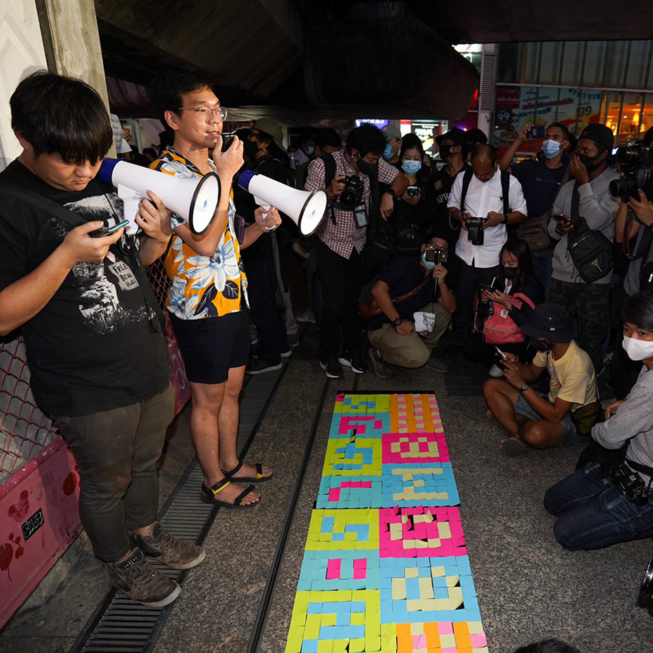 18.00 น. บรรยากาศการชุมนุมของ #คณะราษฎรบอมบ์ ที่บริเวณสกายวอล์ก BTS อนุสาวรีย์ฯ เพื่อแสดงออก เชิงสัญลักษณ์…