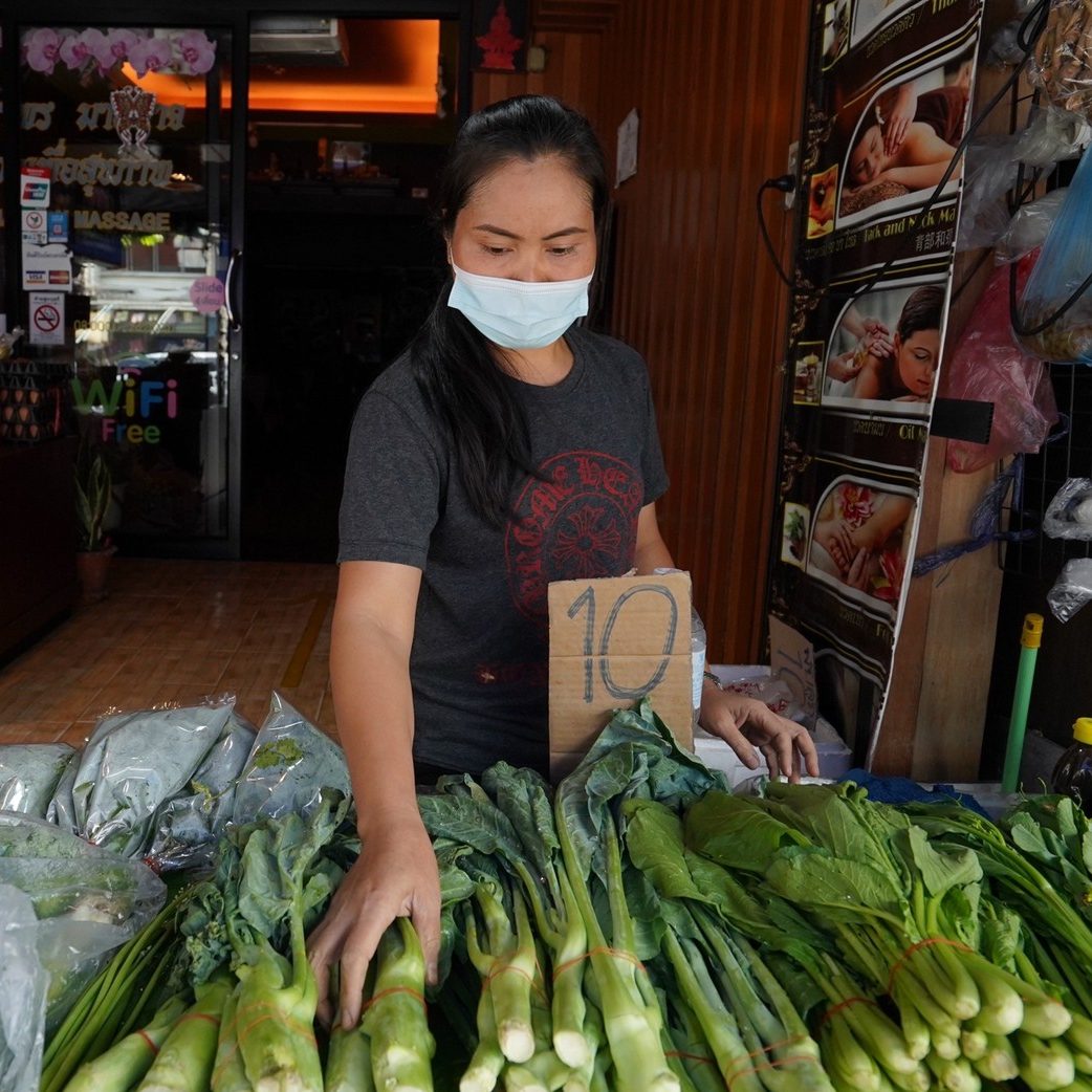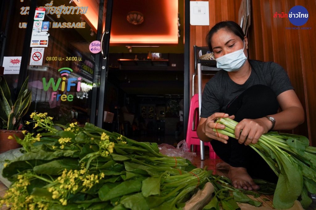 พี่รัตน์ พนักงานร้านนวด เล่าให้ฟังว่า “ยังนวดลูกค้าไม่ได้ เจ้าของร้านเลยออกทุนไปซื้อผักผลไม้มาให้ขาย พอเราขายได้ก็เอาทุนไปคืนเจ้าของร้าน ส่วนกำไรที่เหลือ พนักงานก็ใช้กินใช้จ่ายส่วนตัวแทนรายได้จากการนวด”